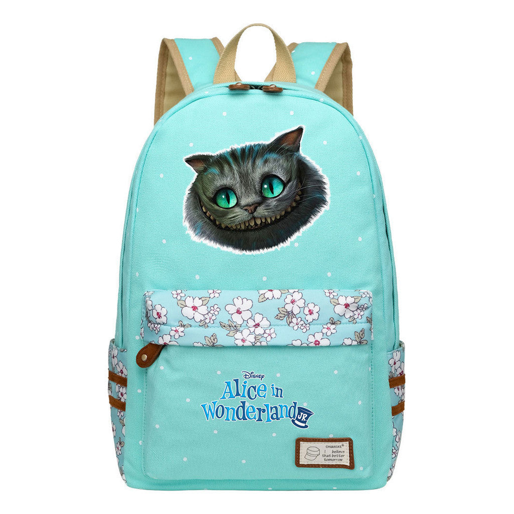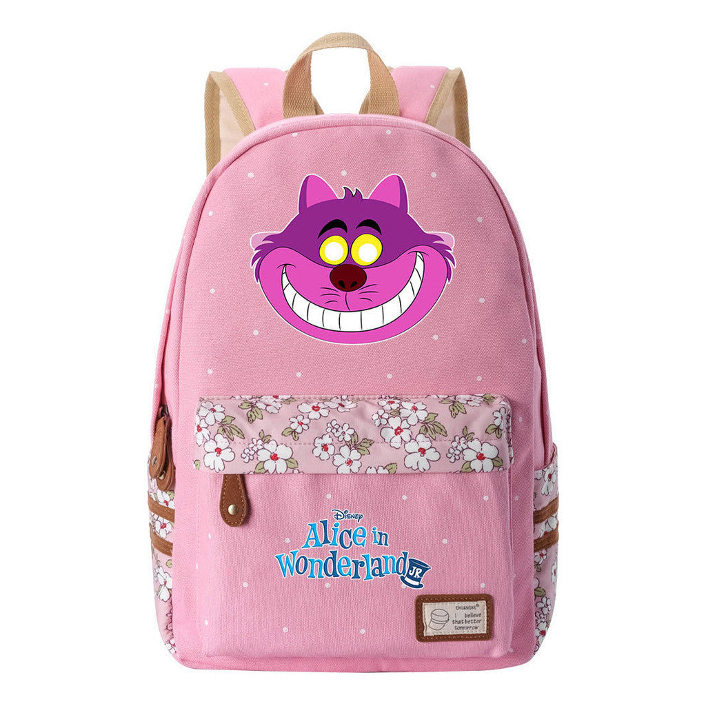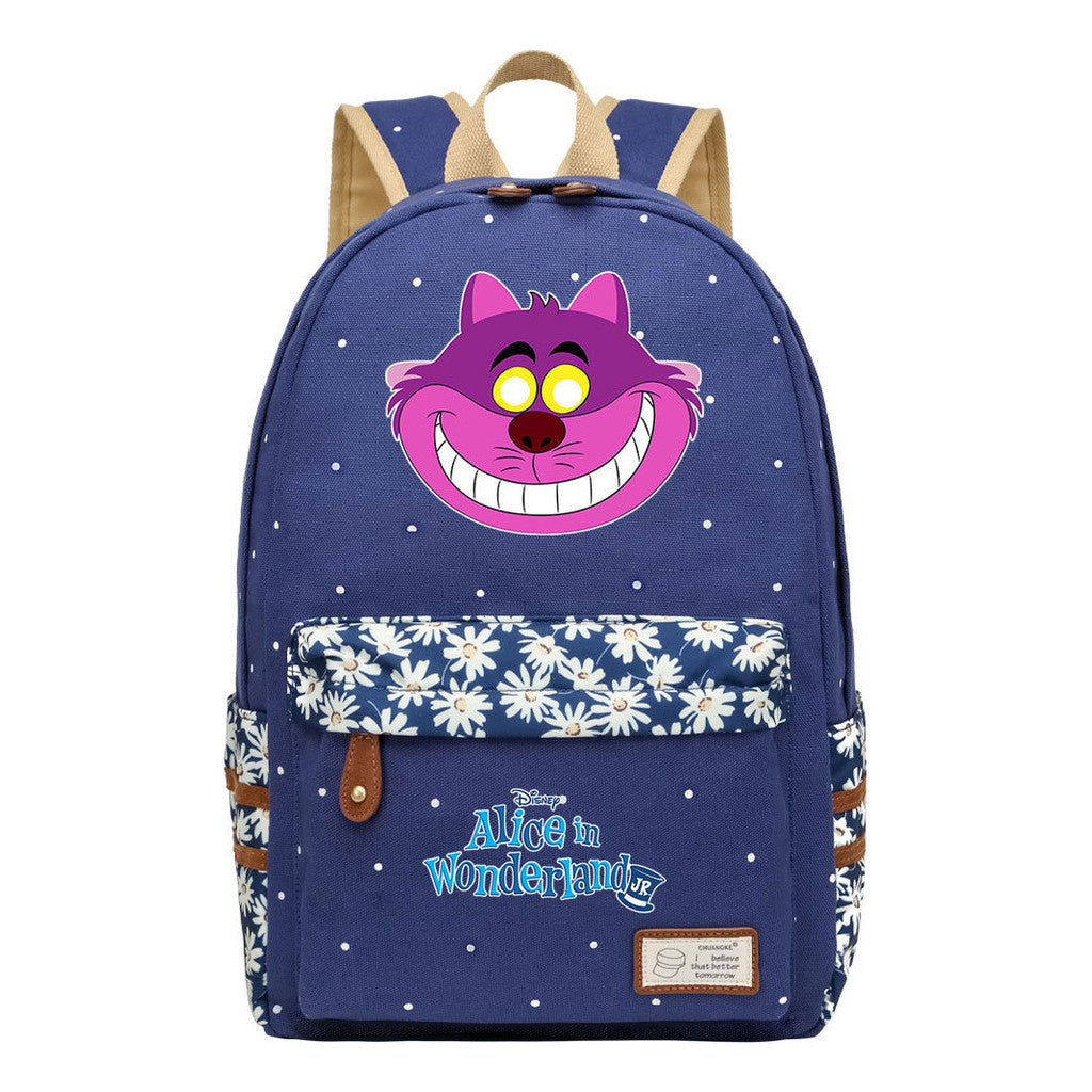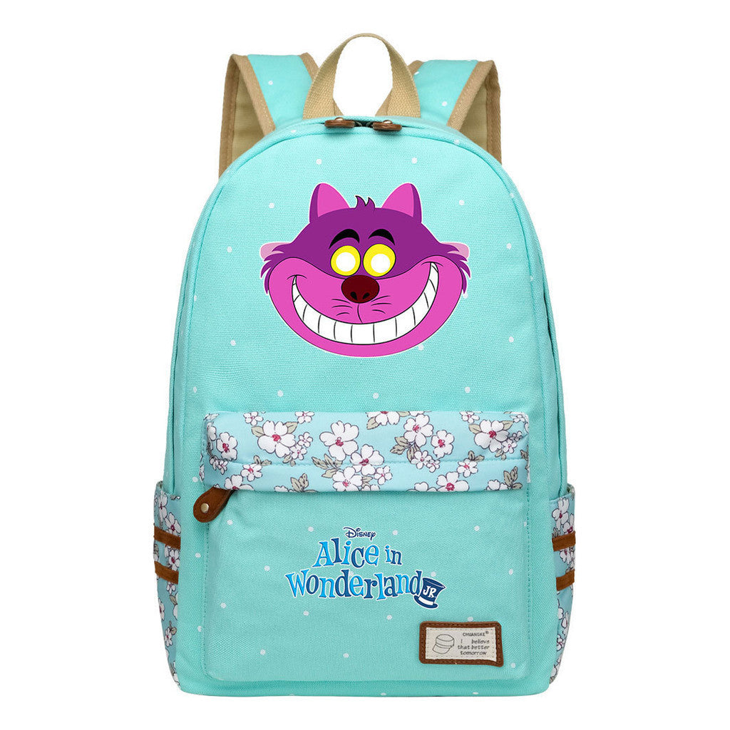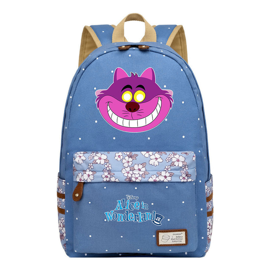Anime Cartoon Cheshire Cat Print Youth Student Backpack With Floral Casual Backpack