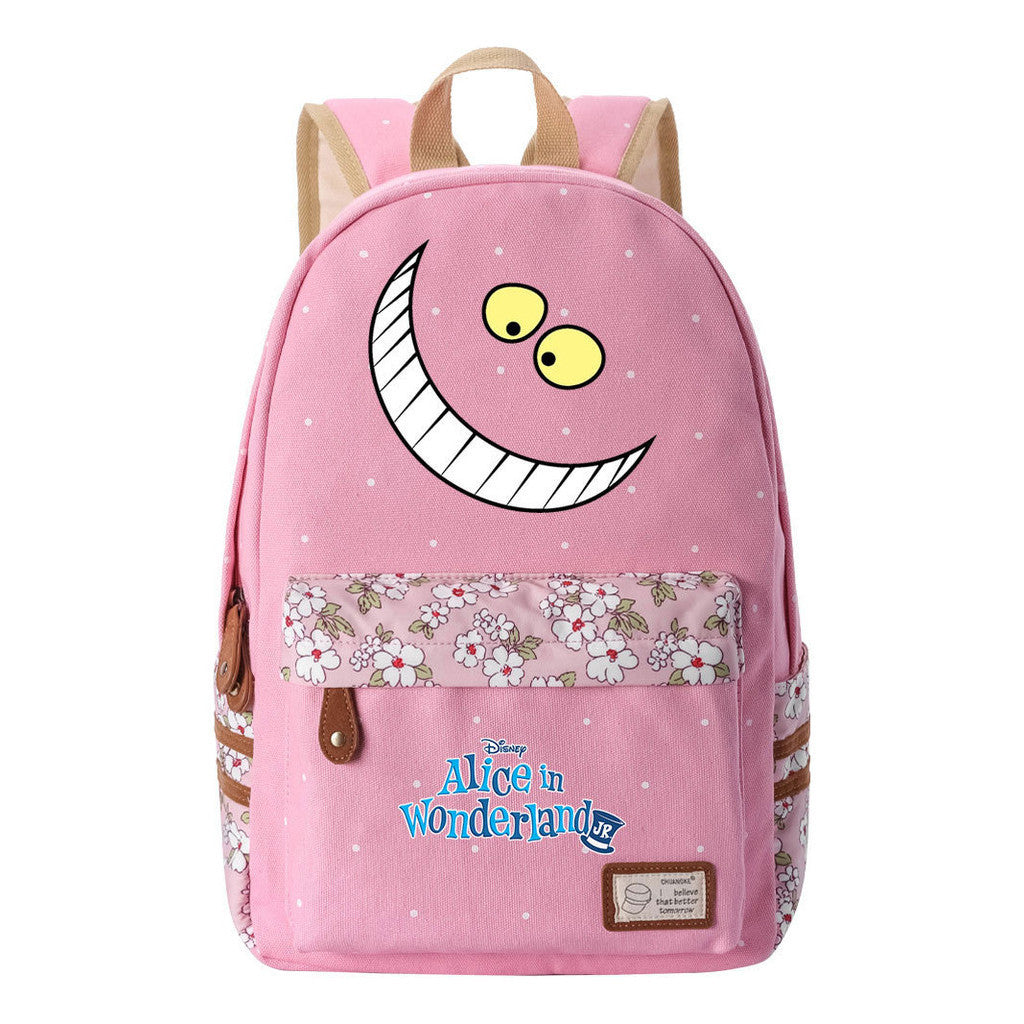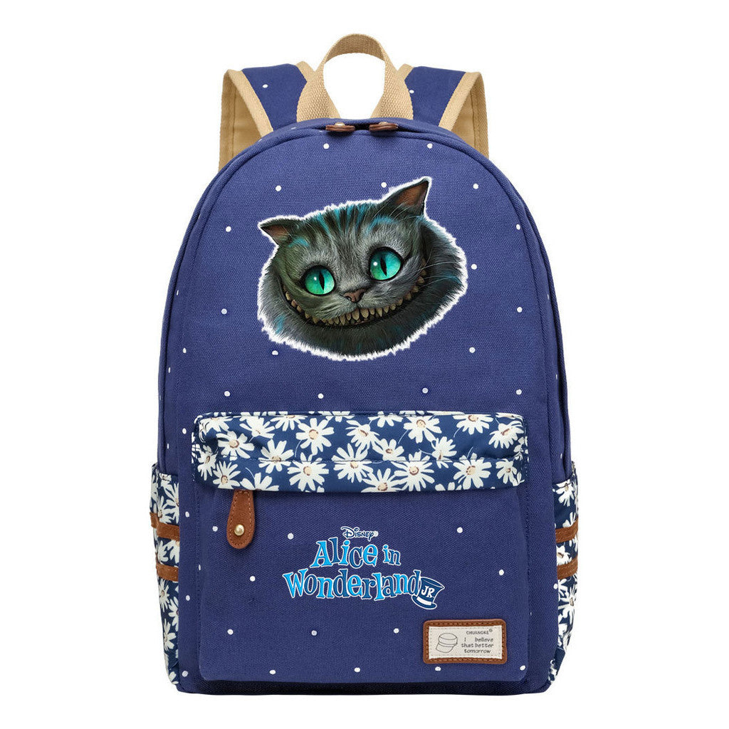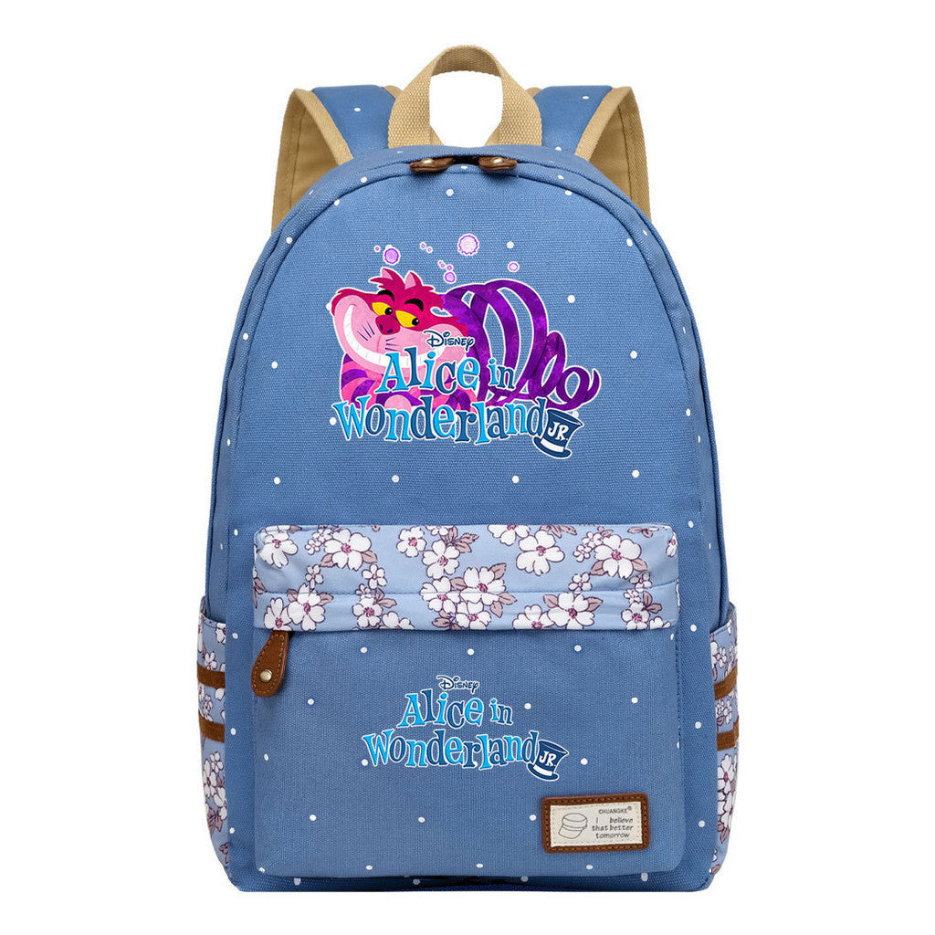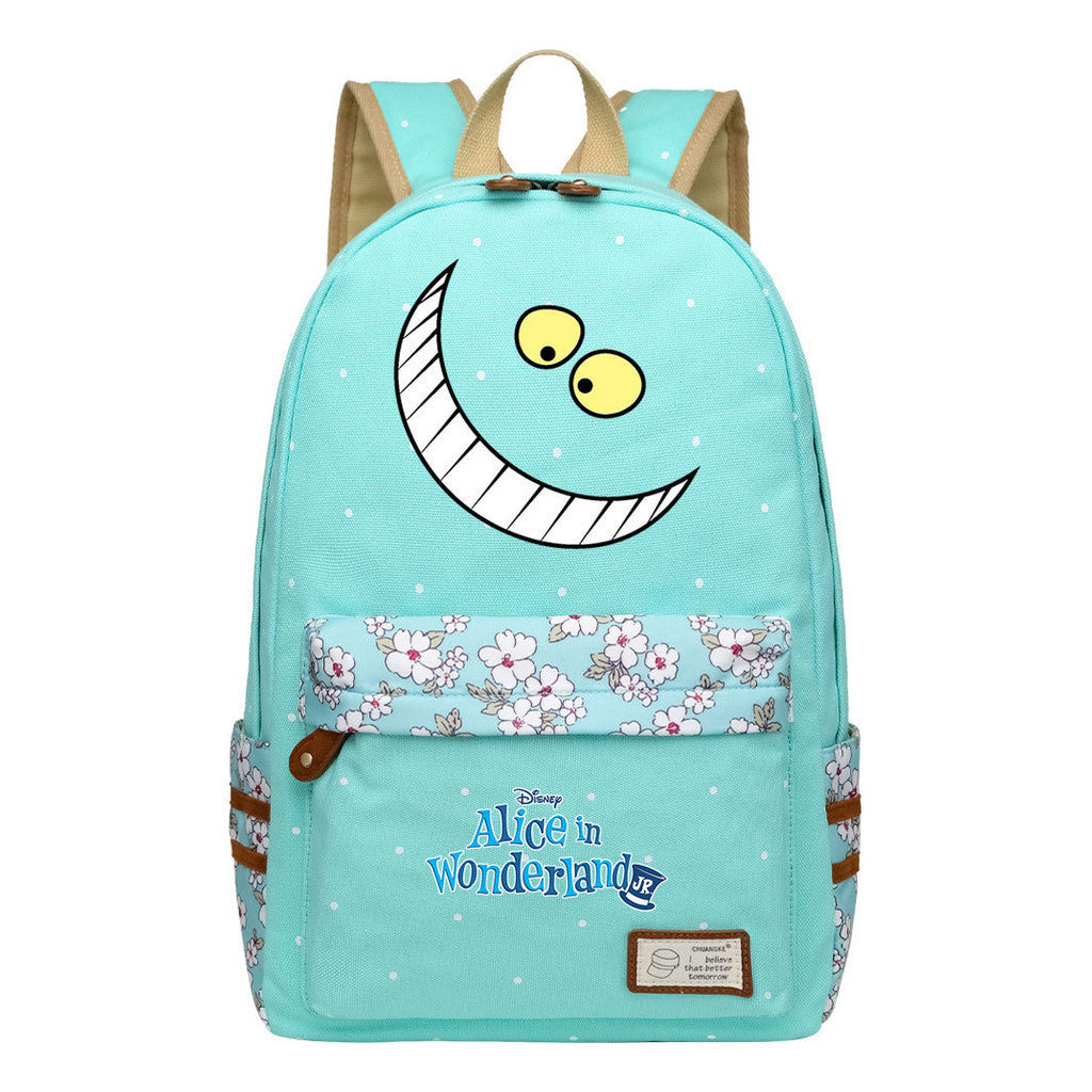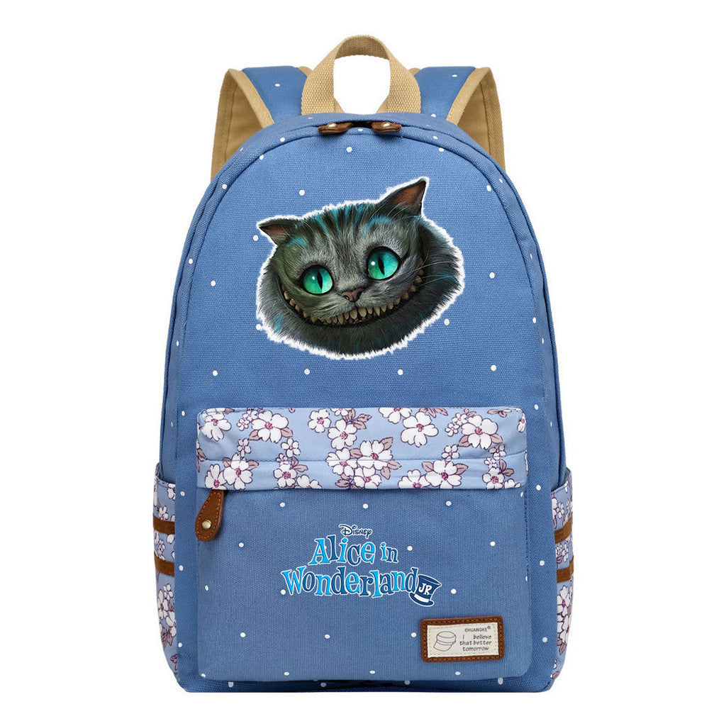 Anime Cartoon Cheshire Cat Print Youth Student Backpack With Floral Casual Backpack