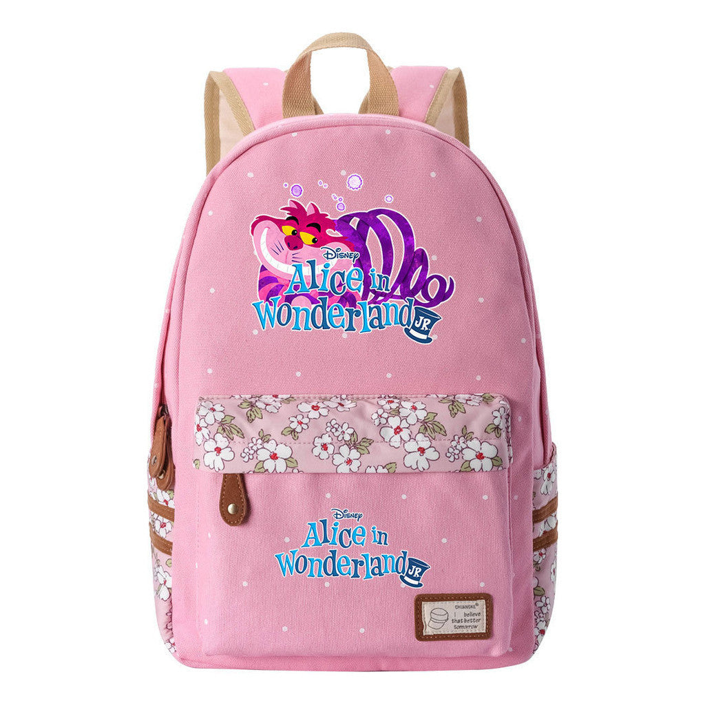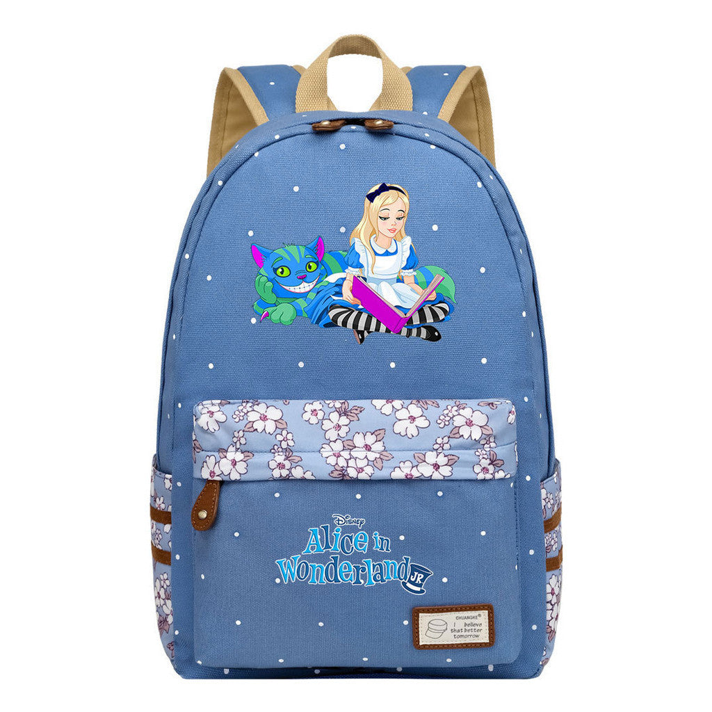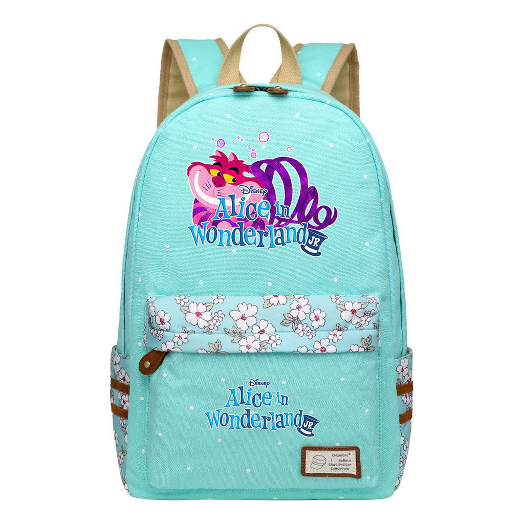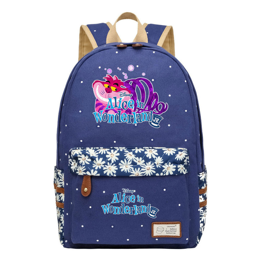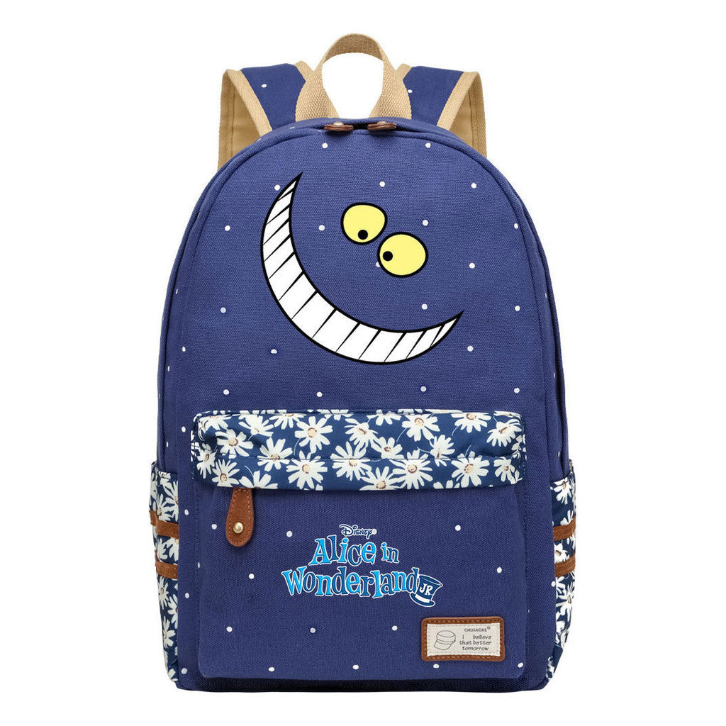 Anime Cartoon Cheshire Cat Print Youth Student Backpack With Floral Casual Backpack