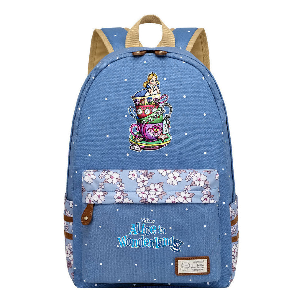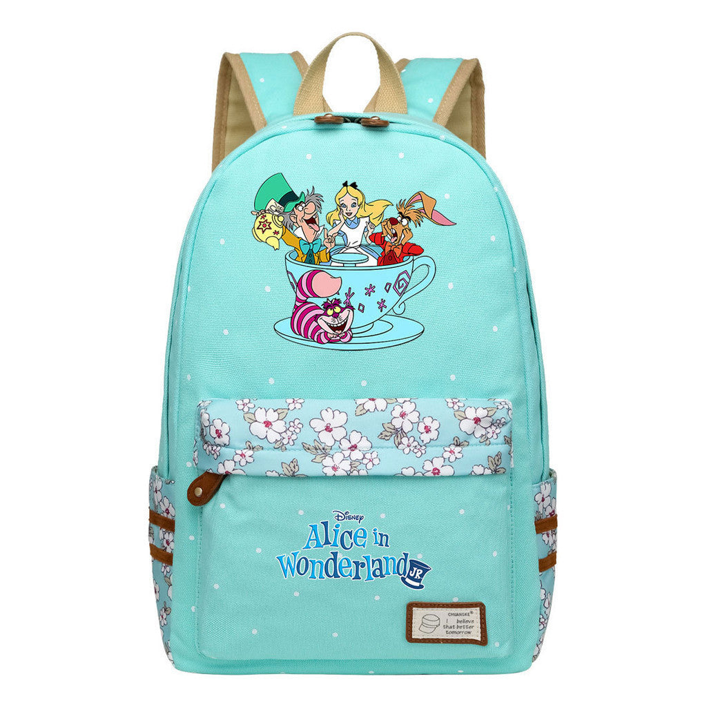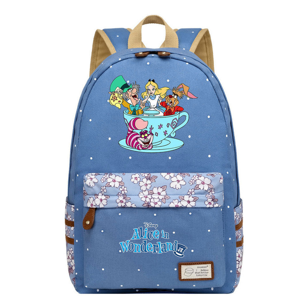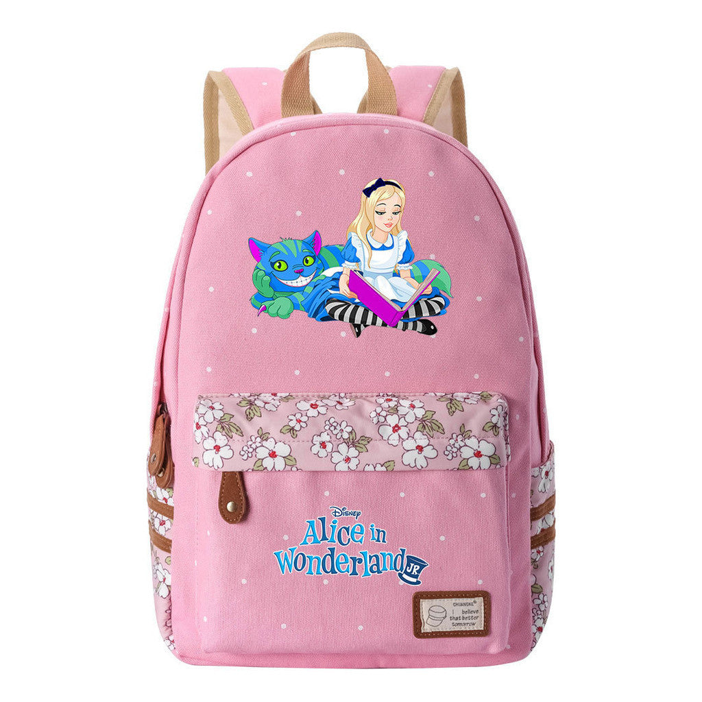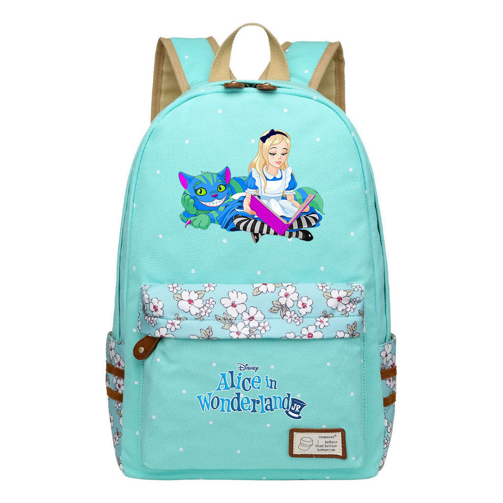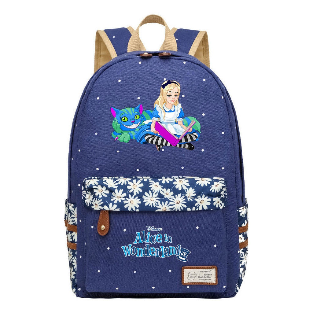 Anime Cartoon Cheshire Cat Print Youth Student Backpack With Floral Casual Backpack