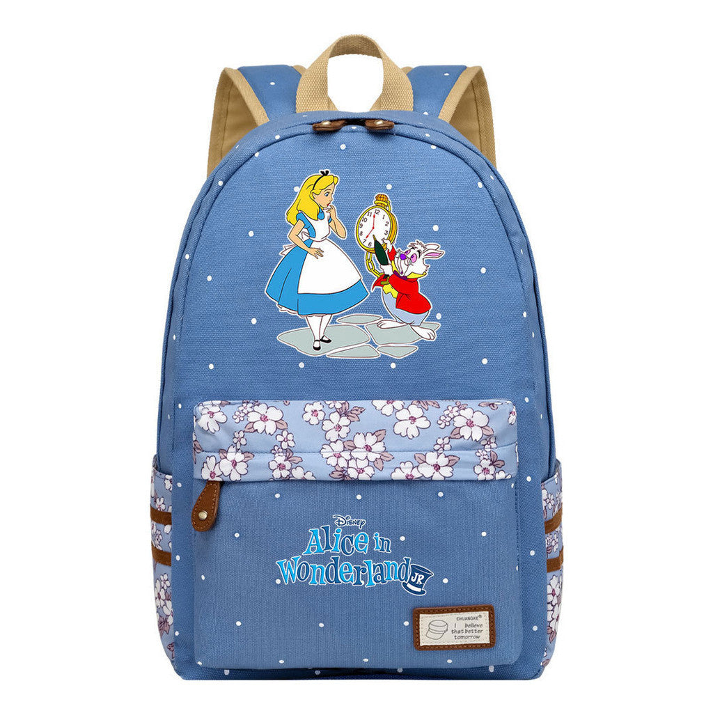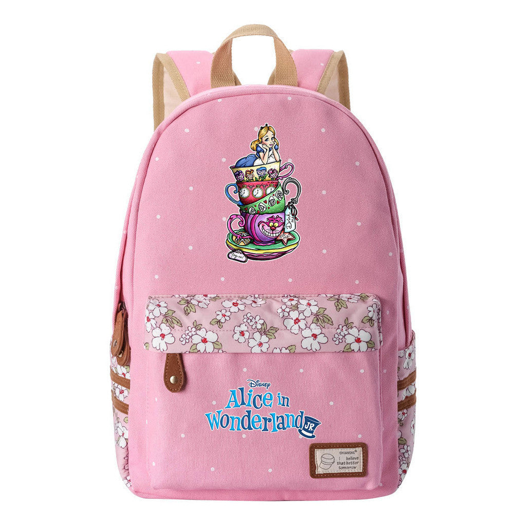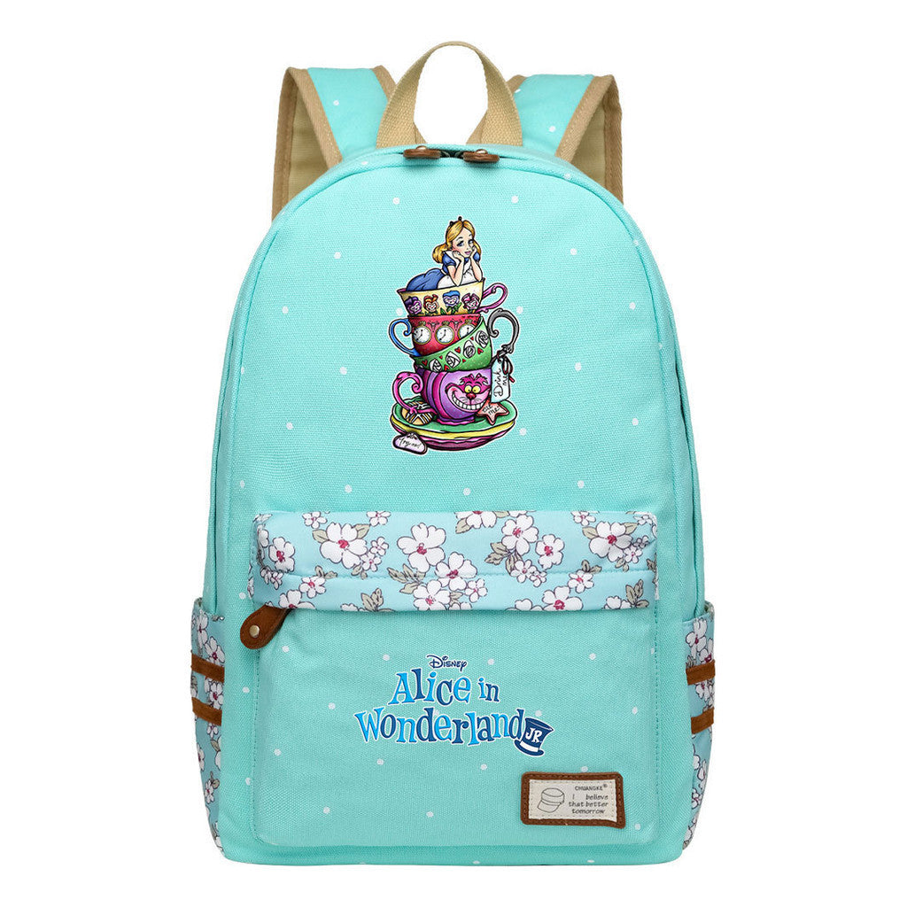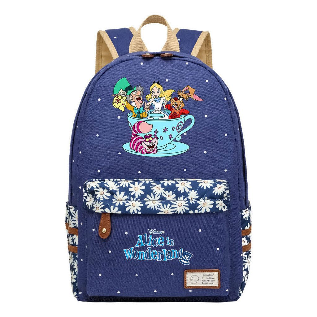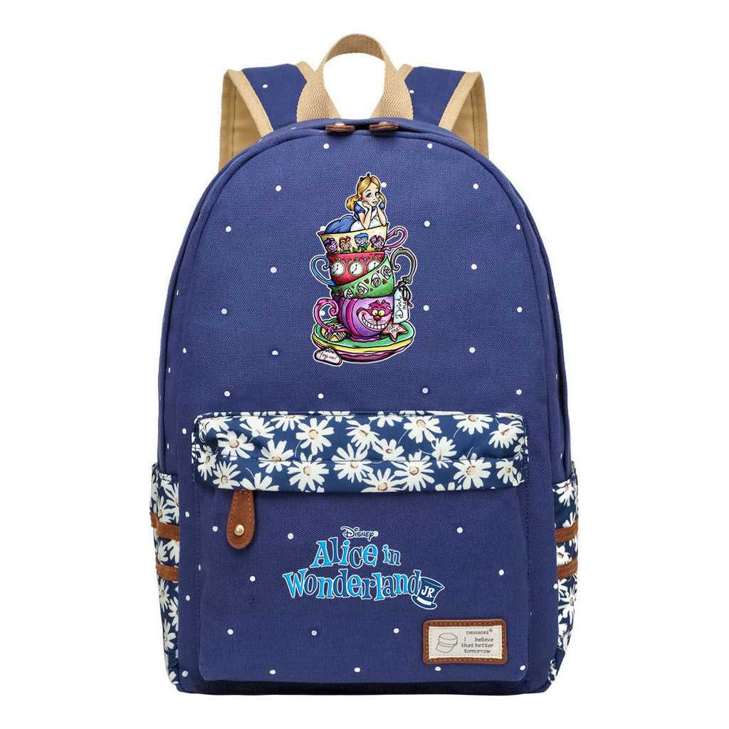 Anime Cartoon Cheshire Cat Print Youth Student Backpack With Floral Casual Backpack
