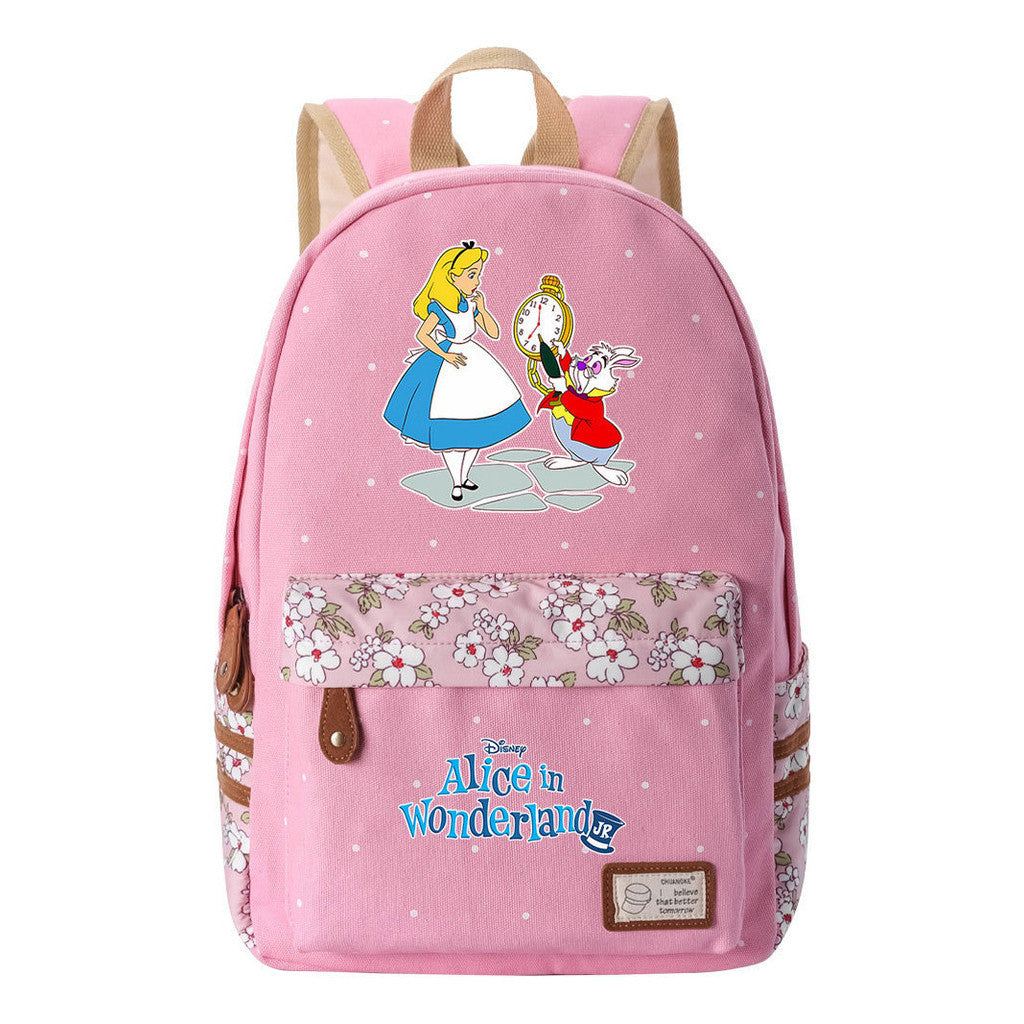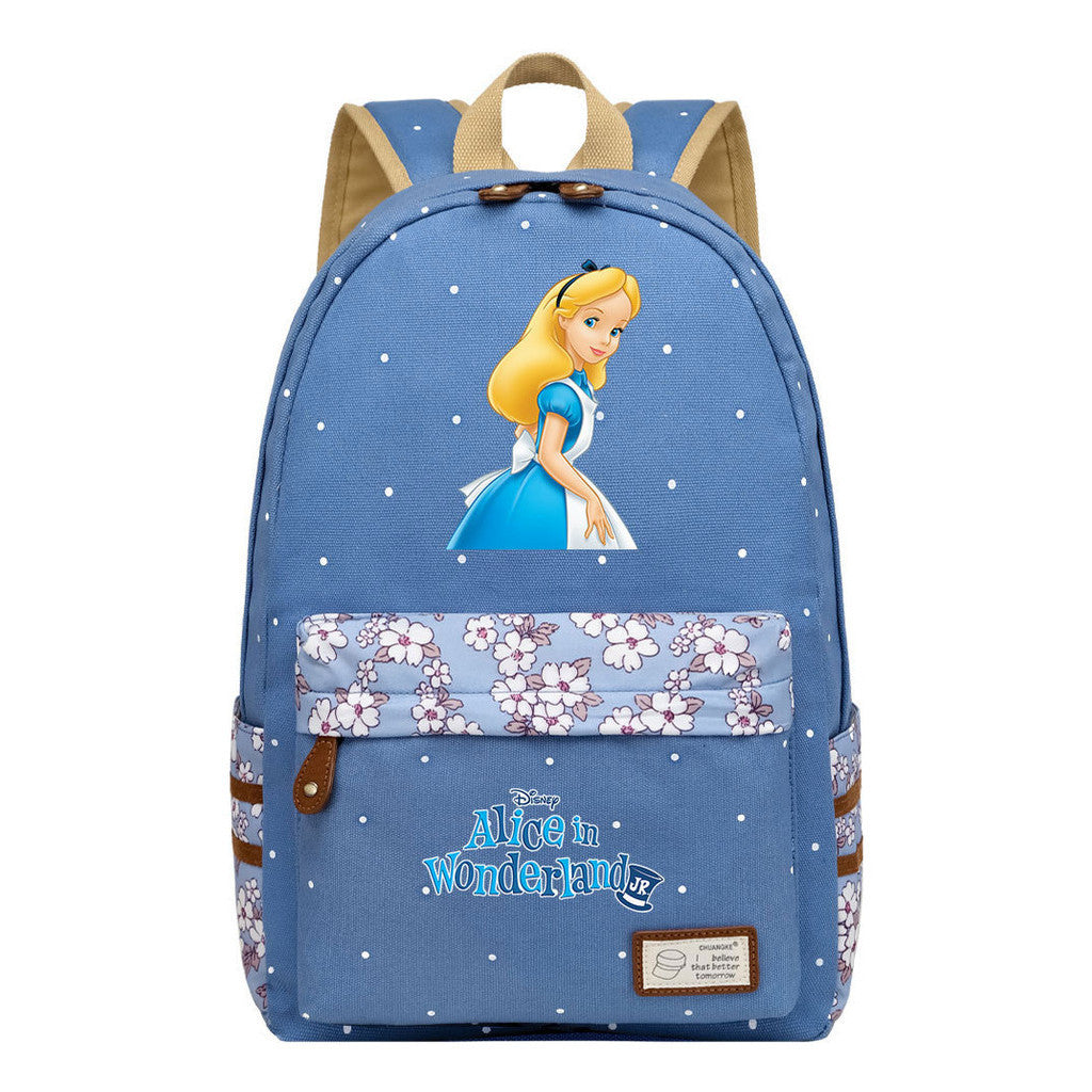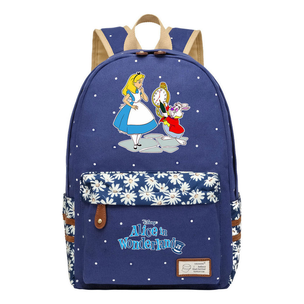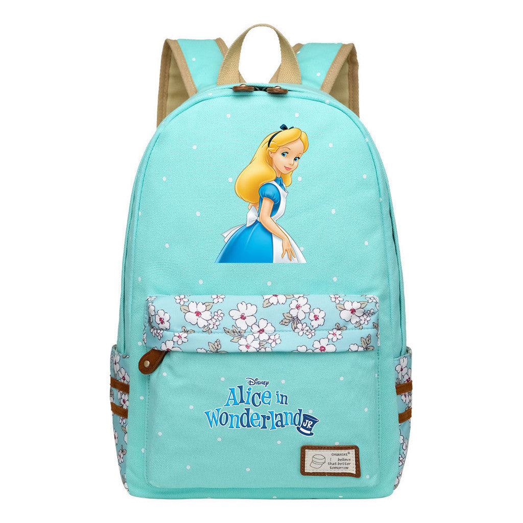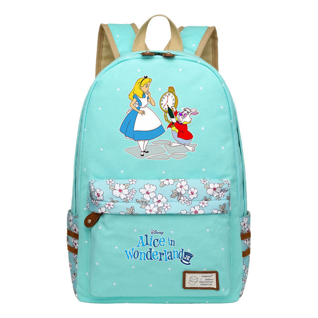Anime Cartoon Cheshire Cat Print Youth Student Backpack With Floral Casual Backpack