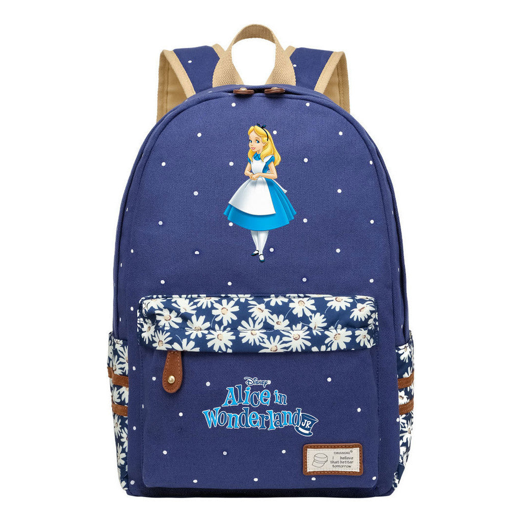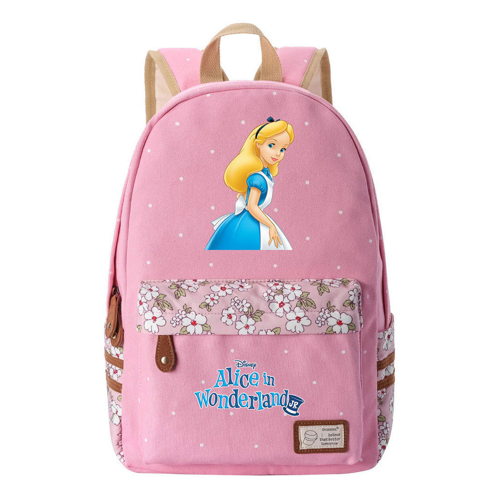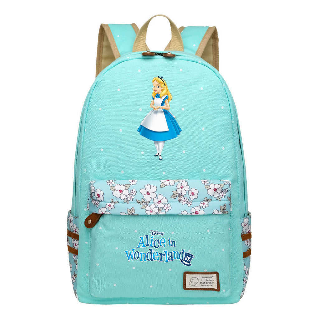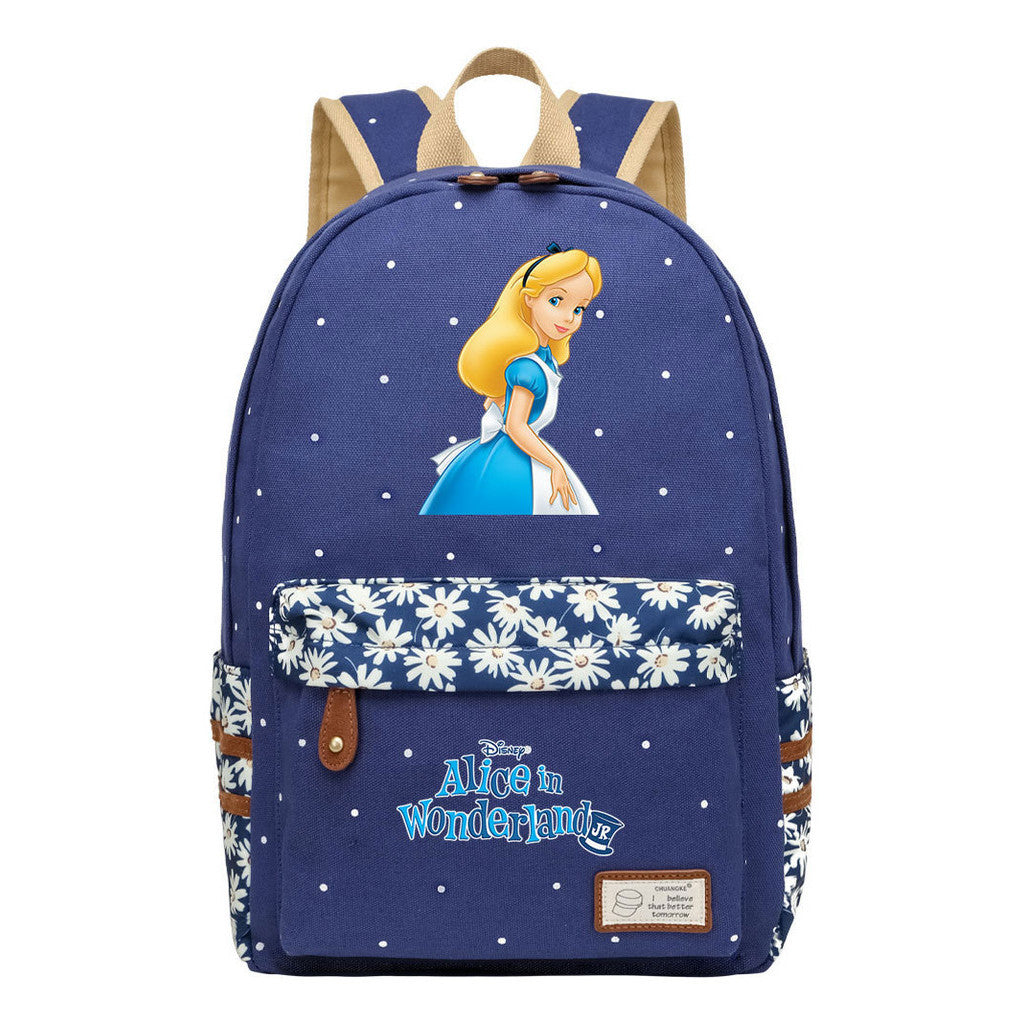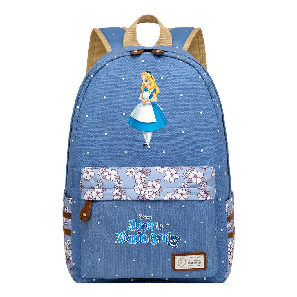 Anime Cartoon Cheshire Cat Print Youth Student Backpack With Floral Casual Backpack