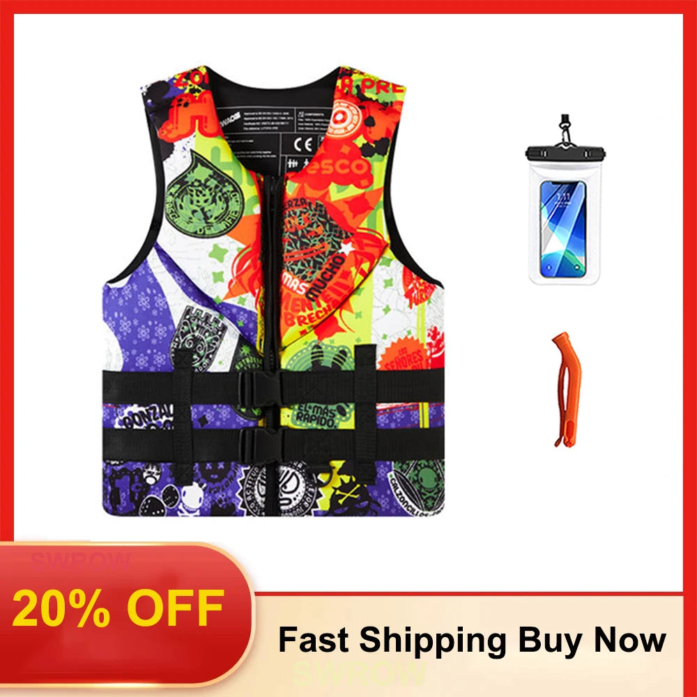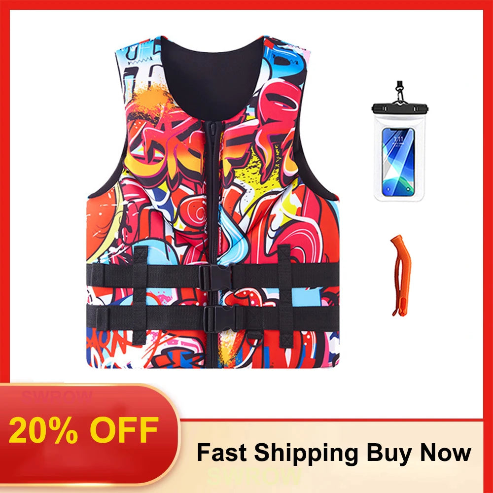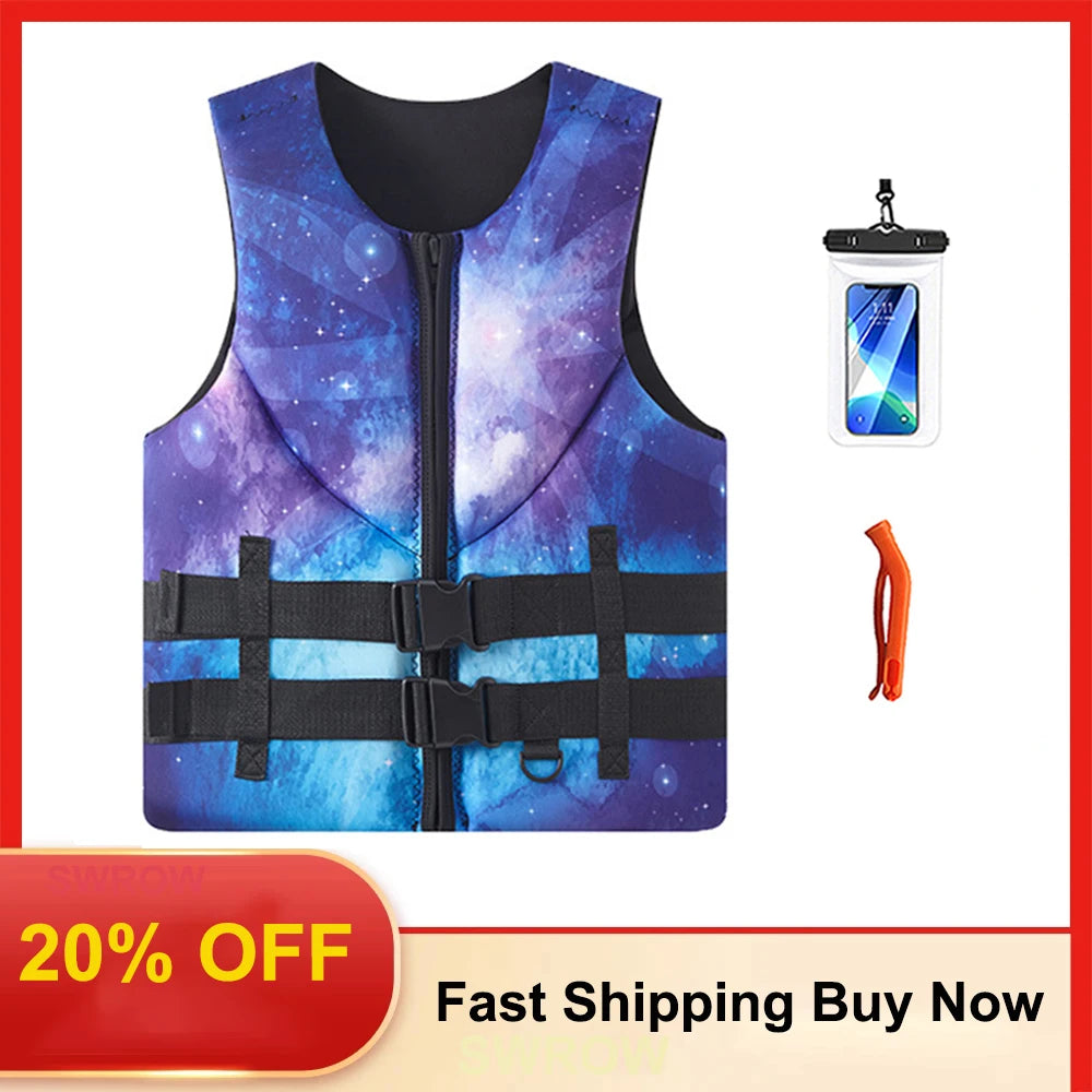 Life Jacket for Adult Super Buoyancy Neoprene Life Vest Surf Kayak Motorboats Raft Rescue Boat Water Sports Swimming