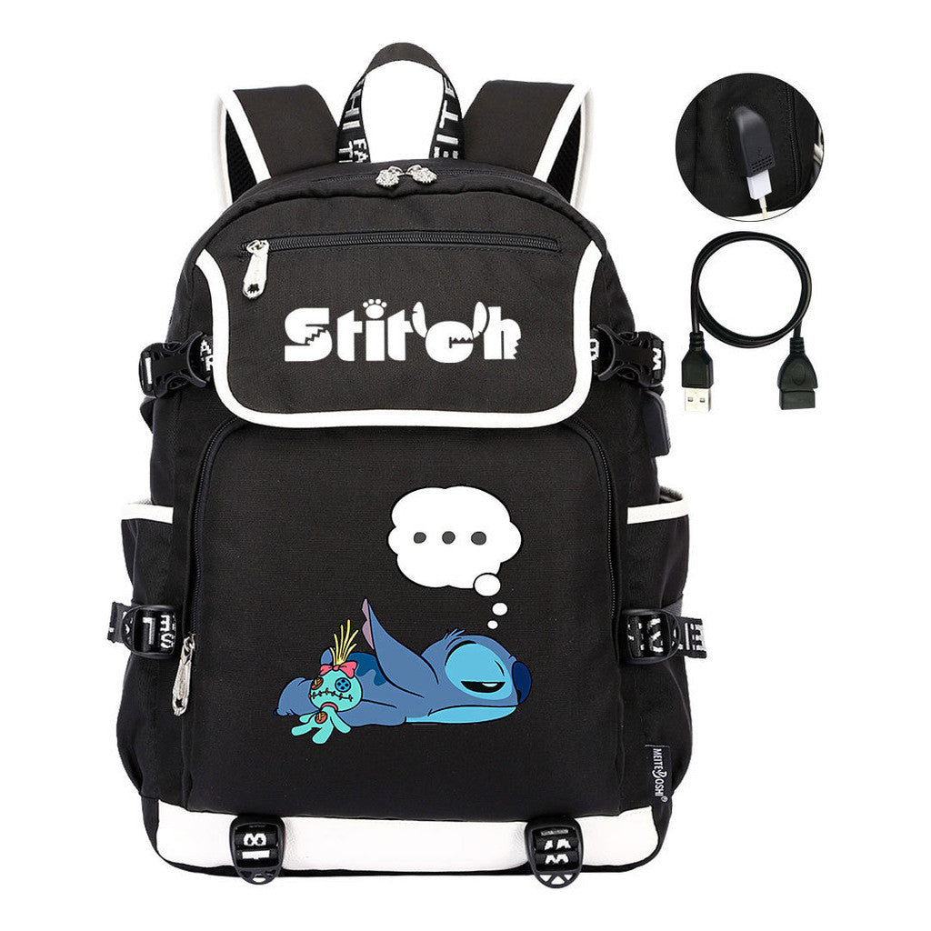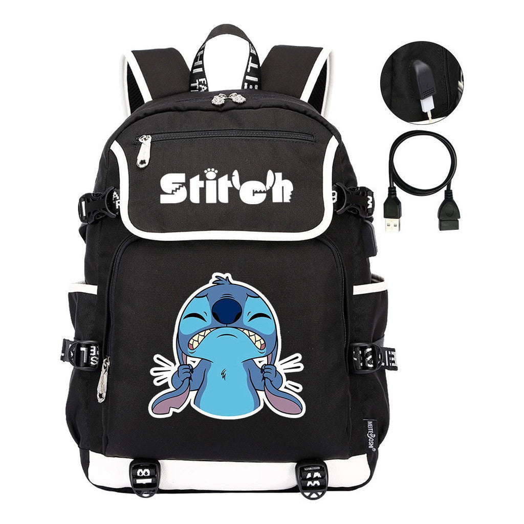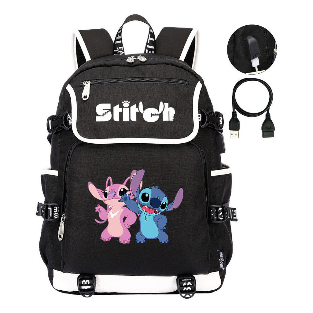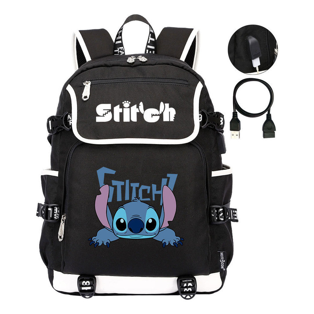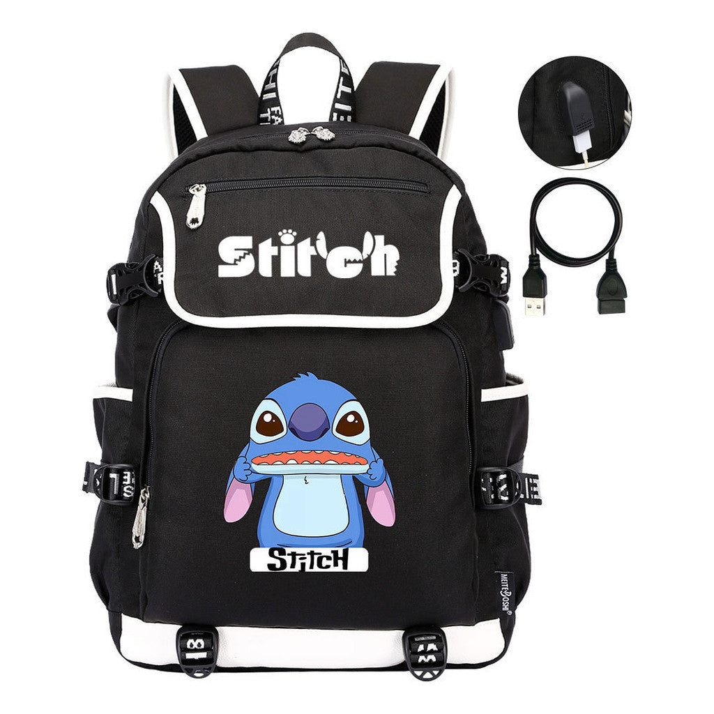 Anime Star Baby Stitch Printed Usb Student Backpack For Men And Women's Leisure Travel Backpack