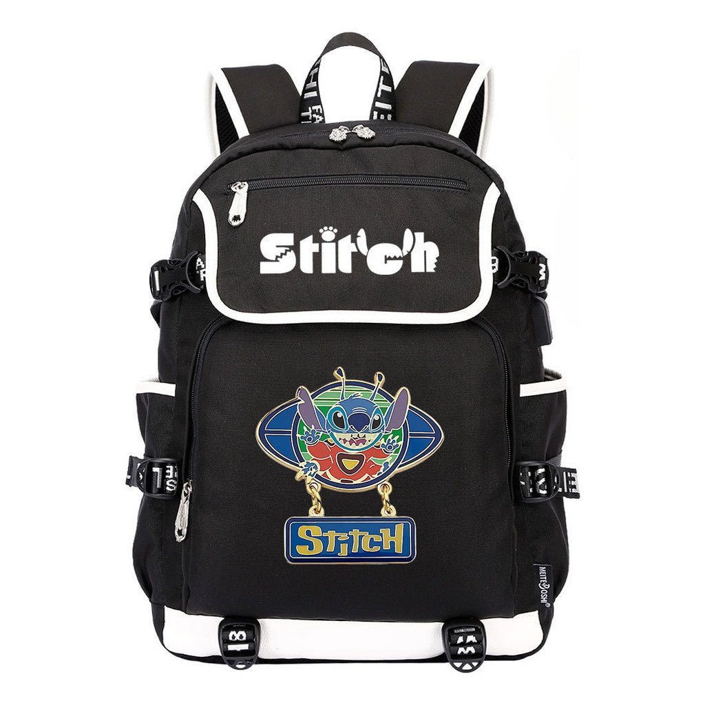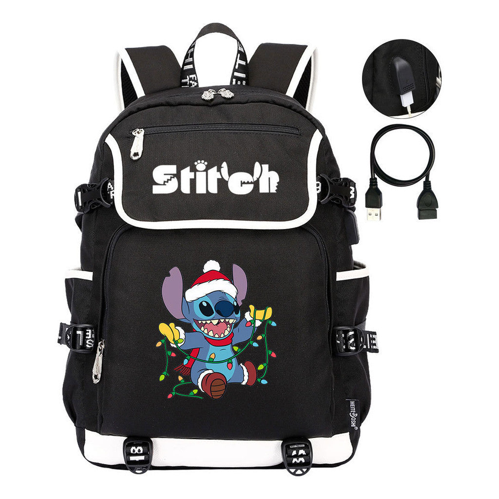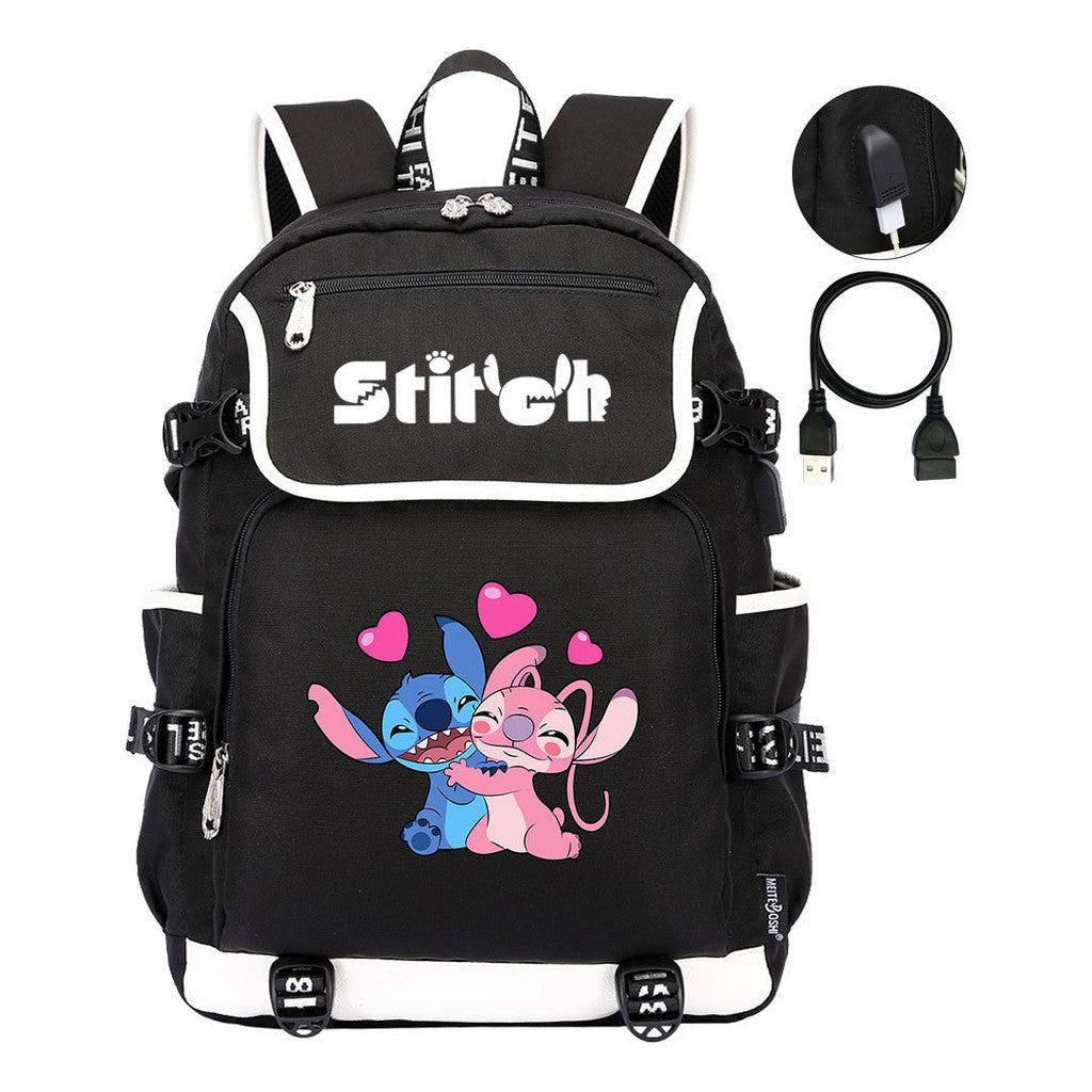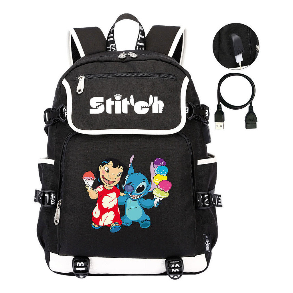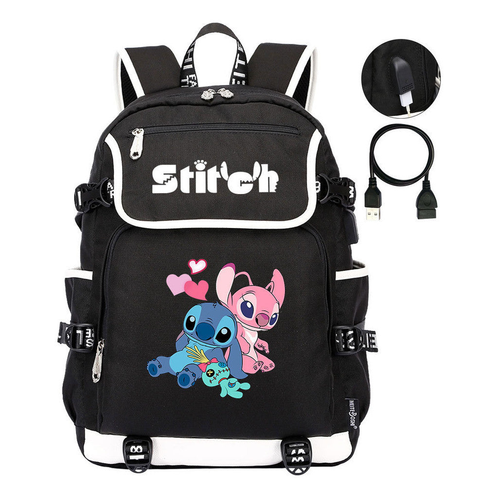Anime Star Baby Stitch Printed Usb Student Backpack For Men And Women's Leisure Travel Backpack