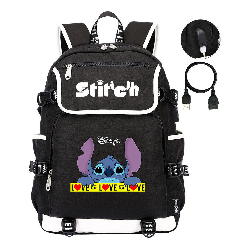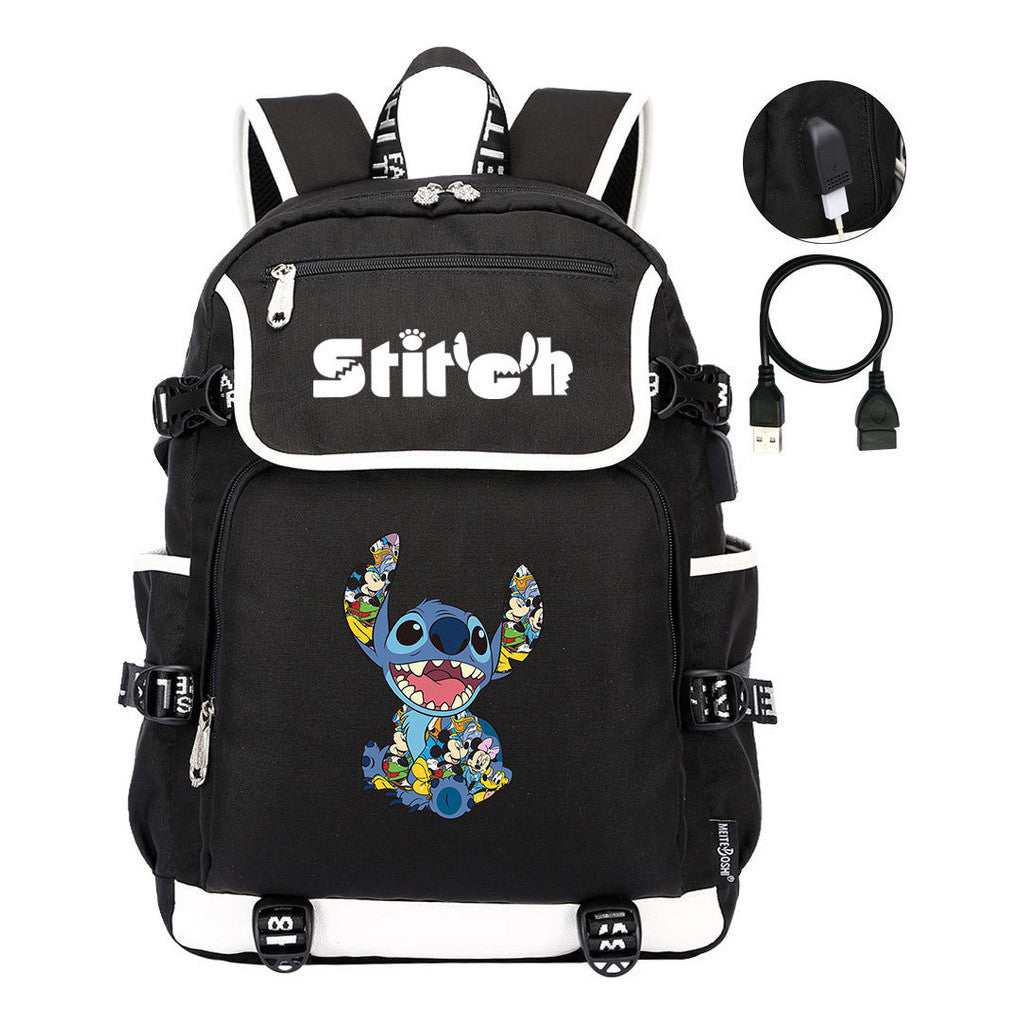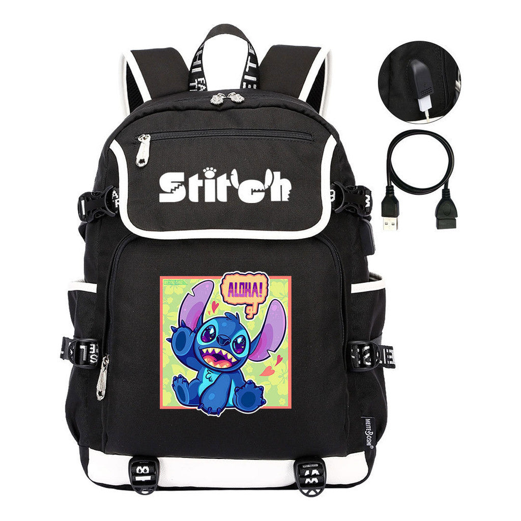 Anime Star Baby Stitch Printed Usb Youth Student Backpack For Leisure Travel Backpack