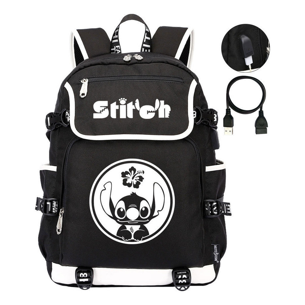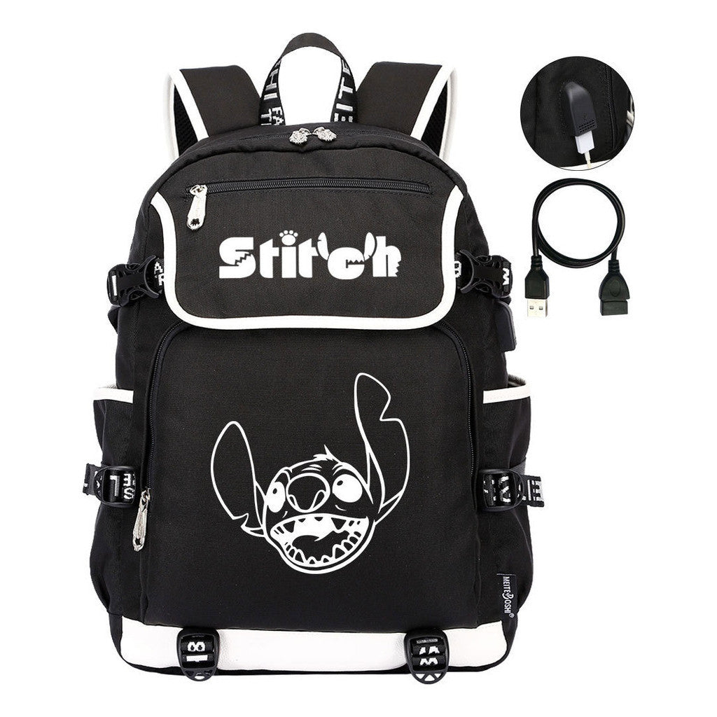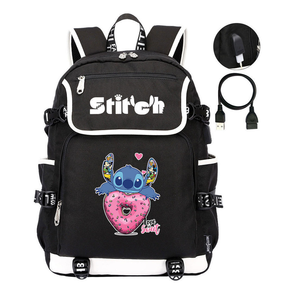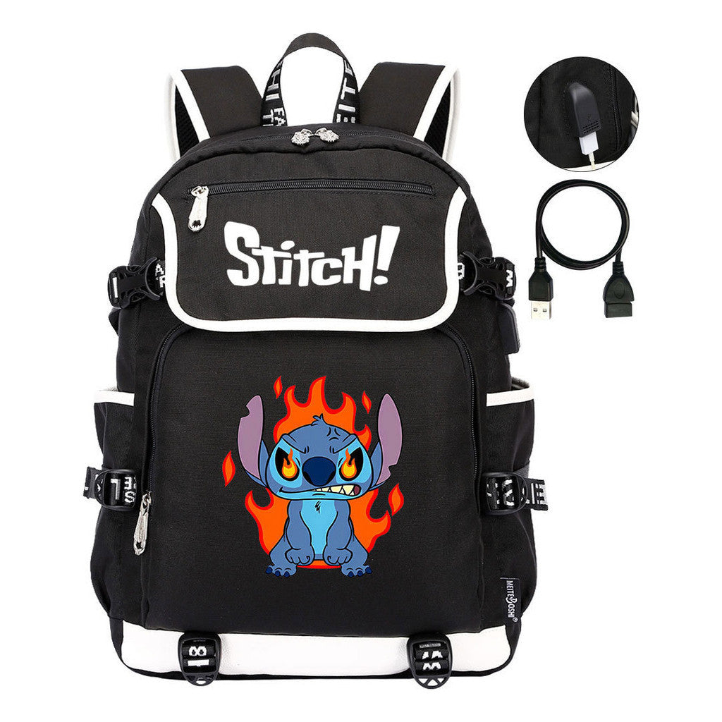 Anime Star Baby Stitch Printed Usb Youth Student Backpack For Leisure Travel Backpack