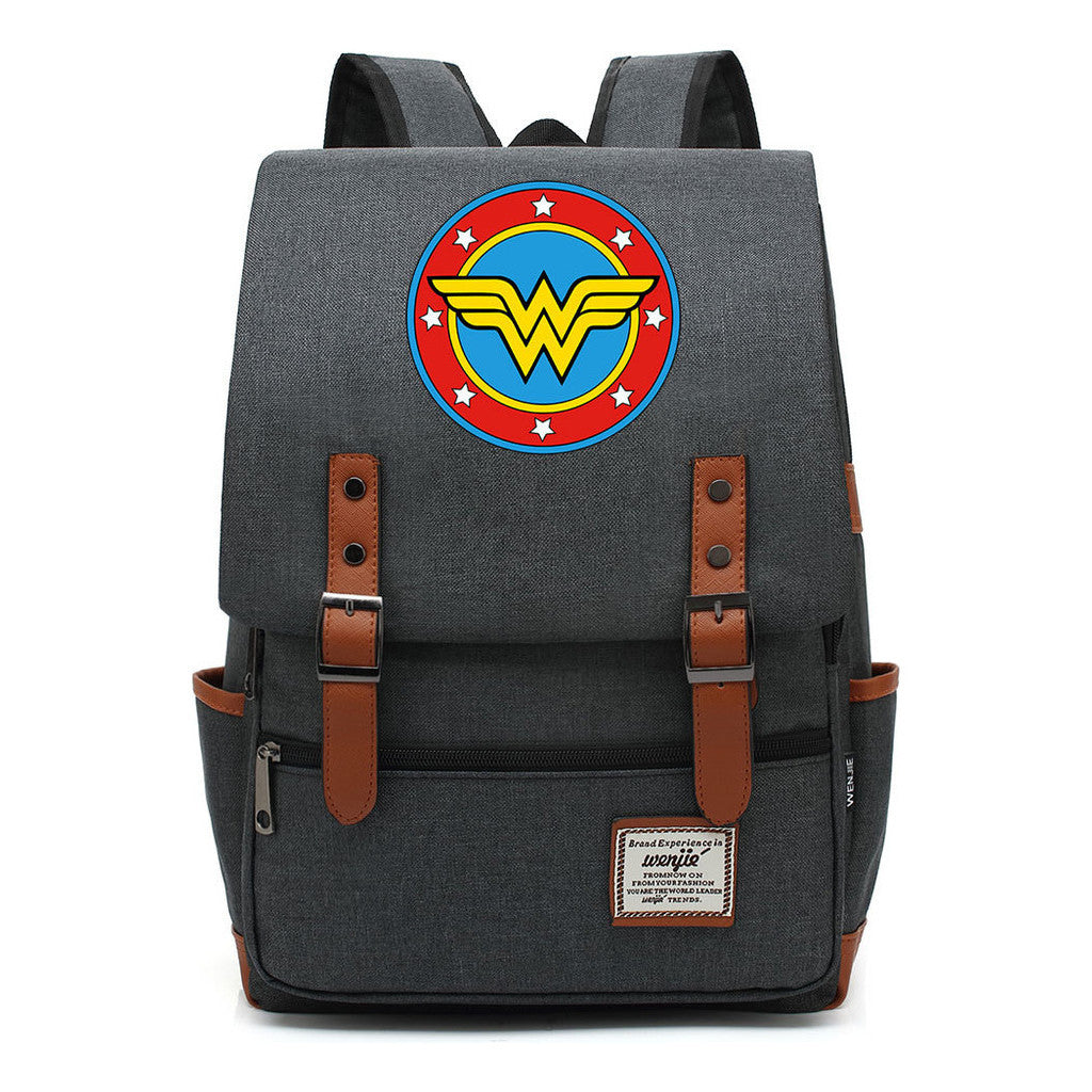 Anime Wonder Woman Printed Youth Student School Bag Men's And Women's Leisure Belt Buckle Backpack