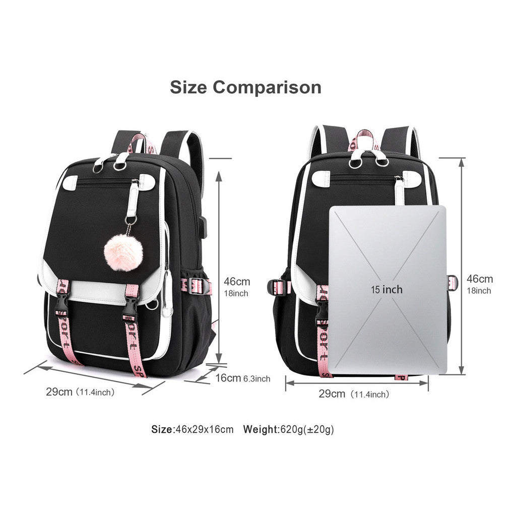 Cartoon Fashion Usb Youth Student School Bag Casual Ribbon Flip Backpack