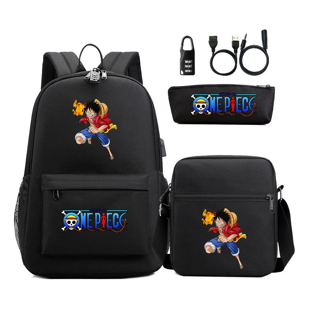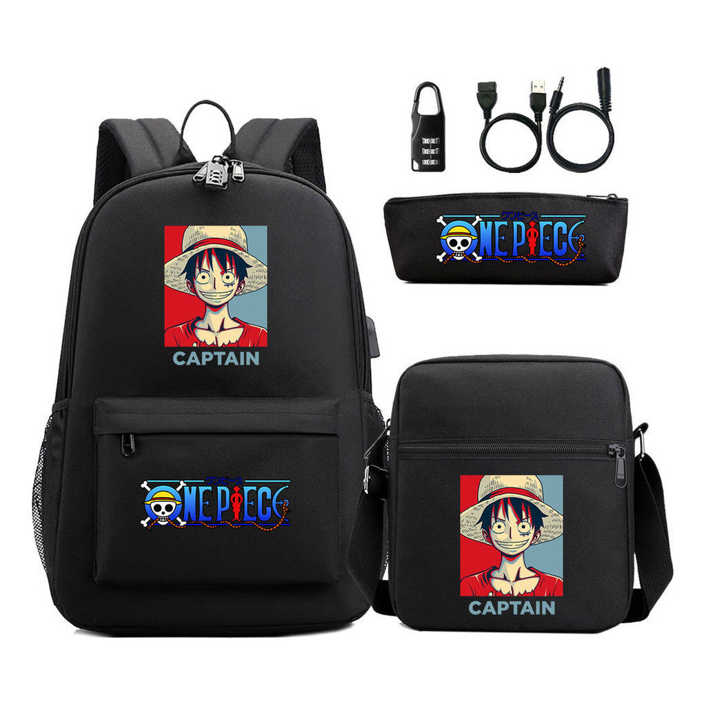 Cartoon Pirate King Usb Password Lock Youth Student Backpack Three Piece Set Backpack