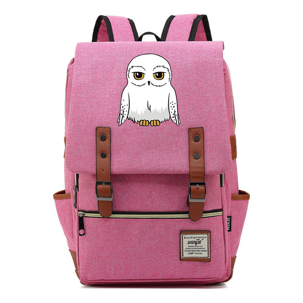 Cartoon White Owl Youth Student Backpack For Men And Women With Casual Belt Buckle Backpack