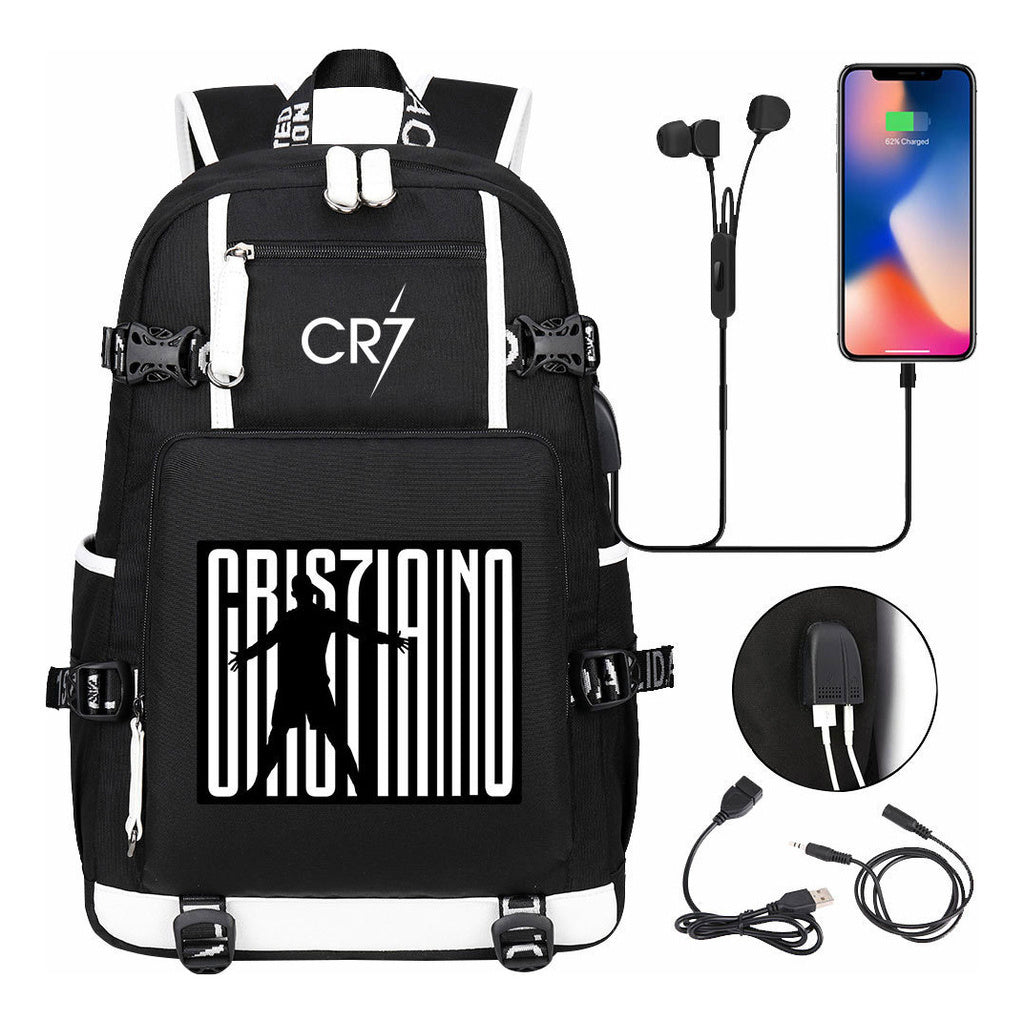 Football Dribbling Star Cristiano Ronaldo Printed Usb Large Capacity Youth Student Backpack For Men And Women's Leisure Travel Backpack