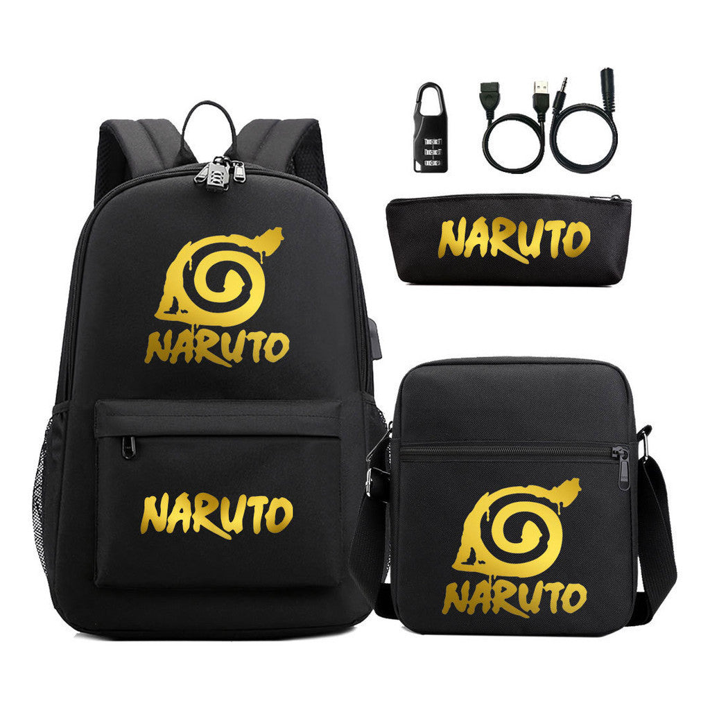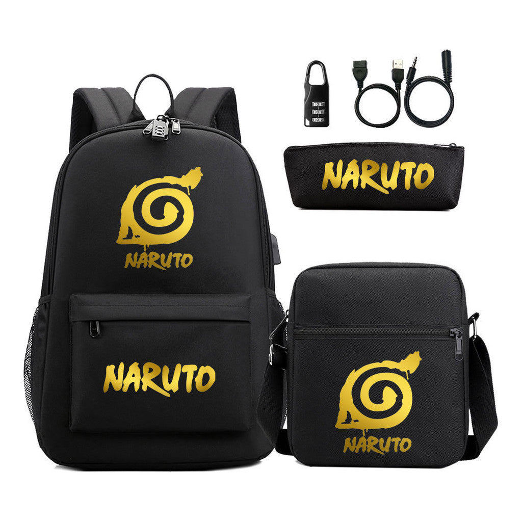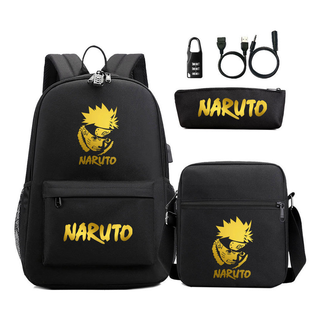 Golden Naruto Usb Password Lock Teenage Student School Bag Three Piece Backpack Set