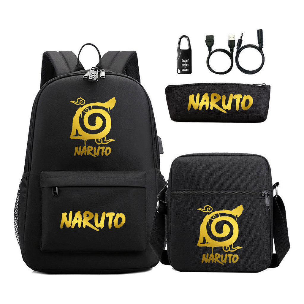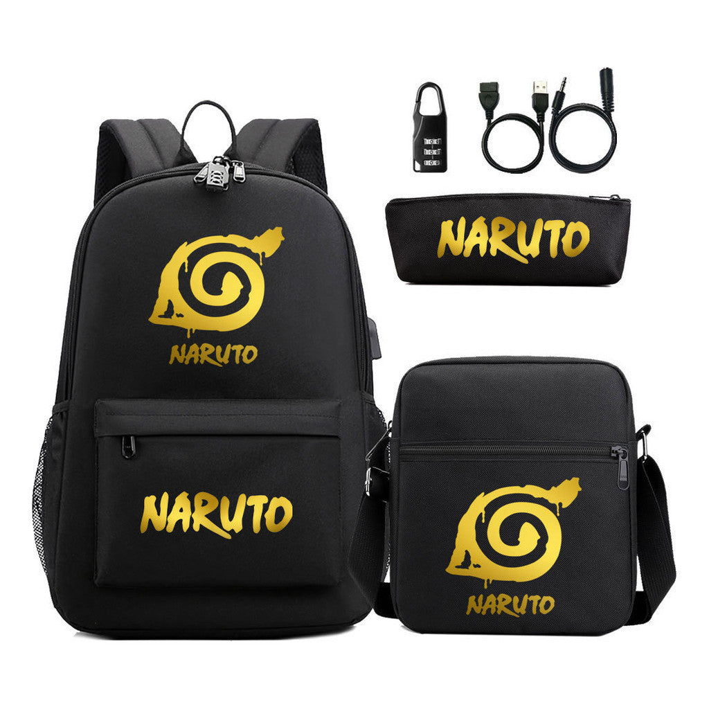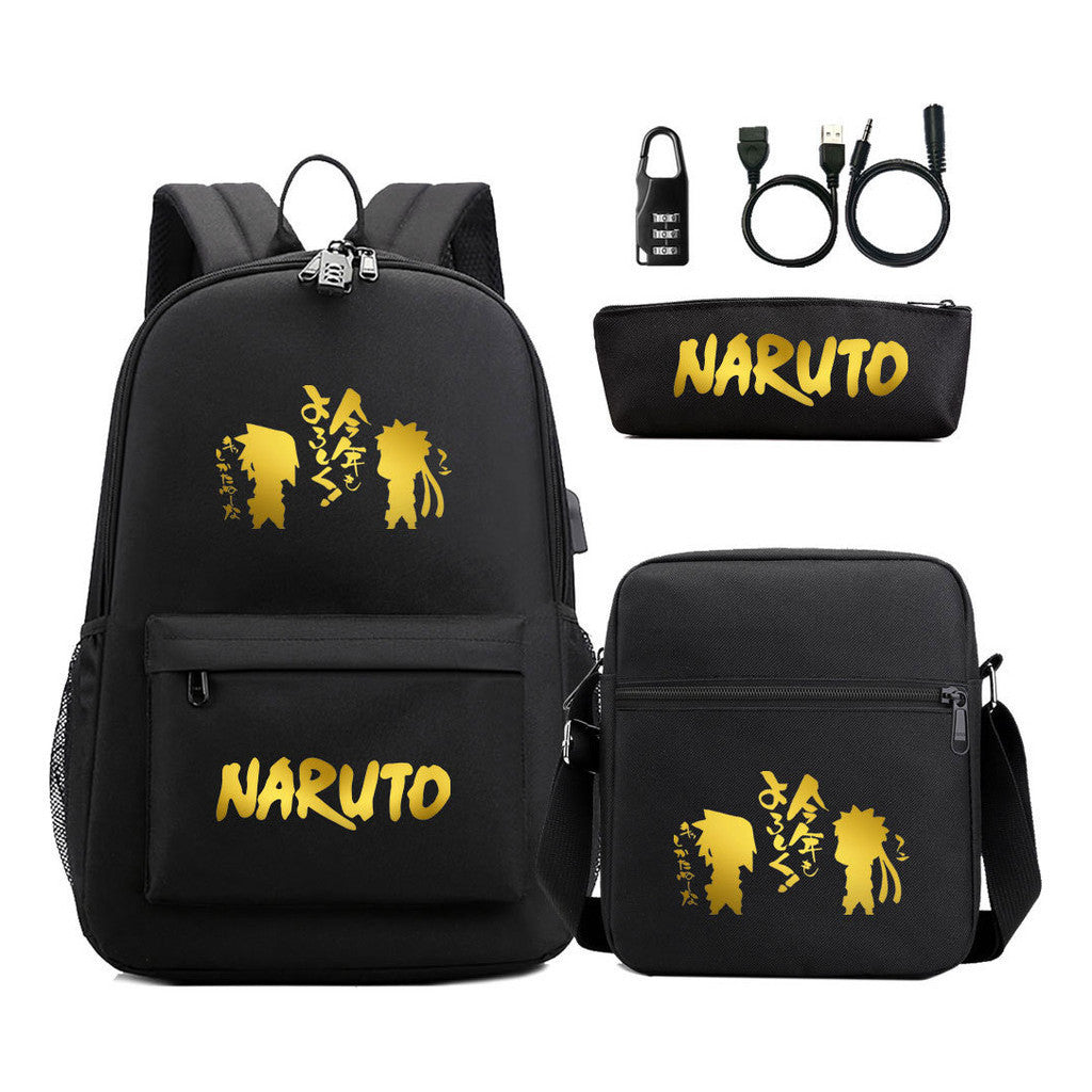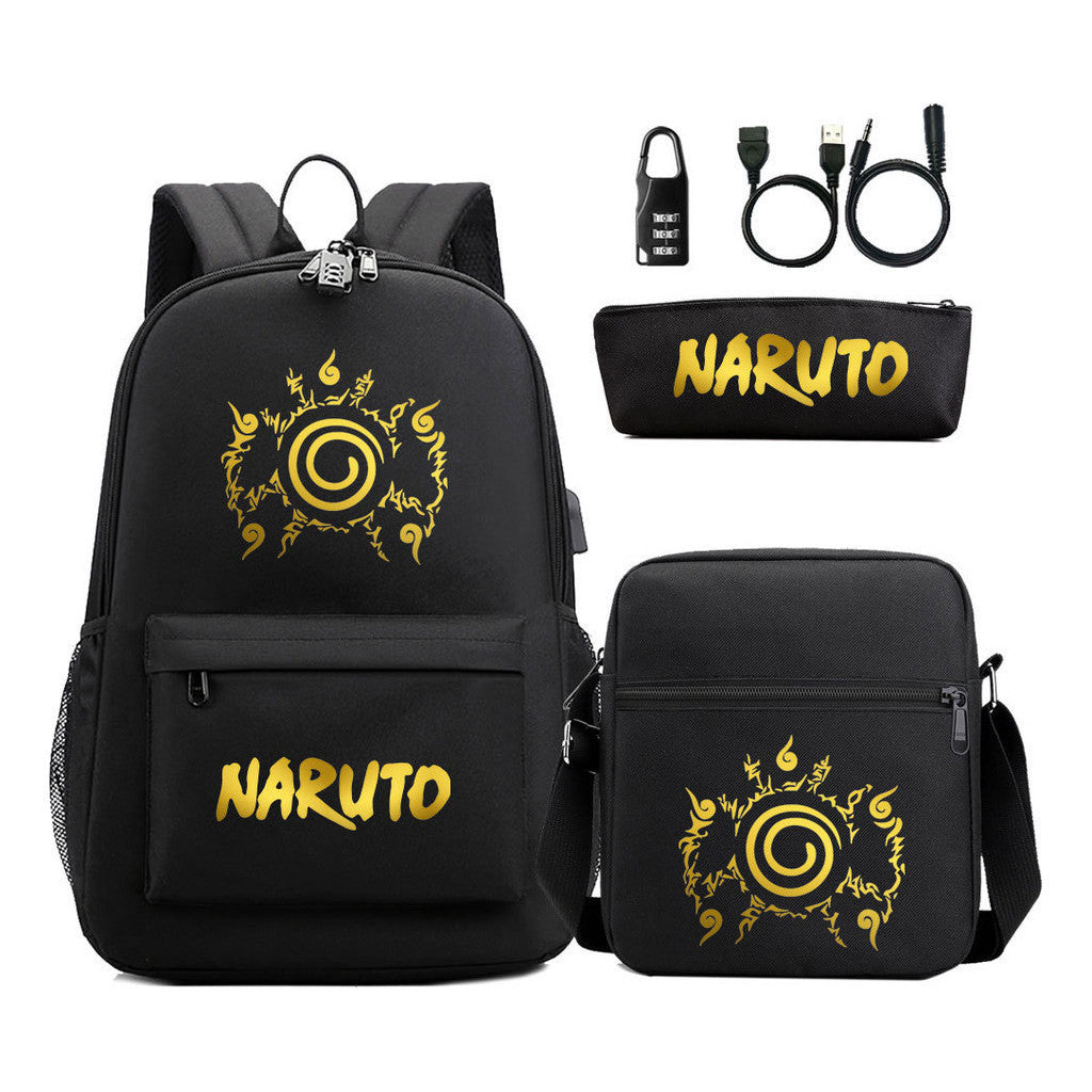 Golden Naruto Usb Password Lock Teenage Student School Bag Three Piece Backpack Set