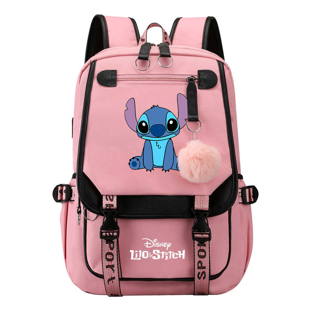Interstellar Baby Stitch Usb Backpack For Boys And Girls Casual Woven Strap Flip Backpack