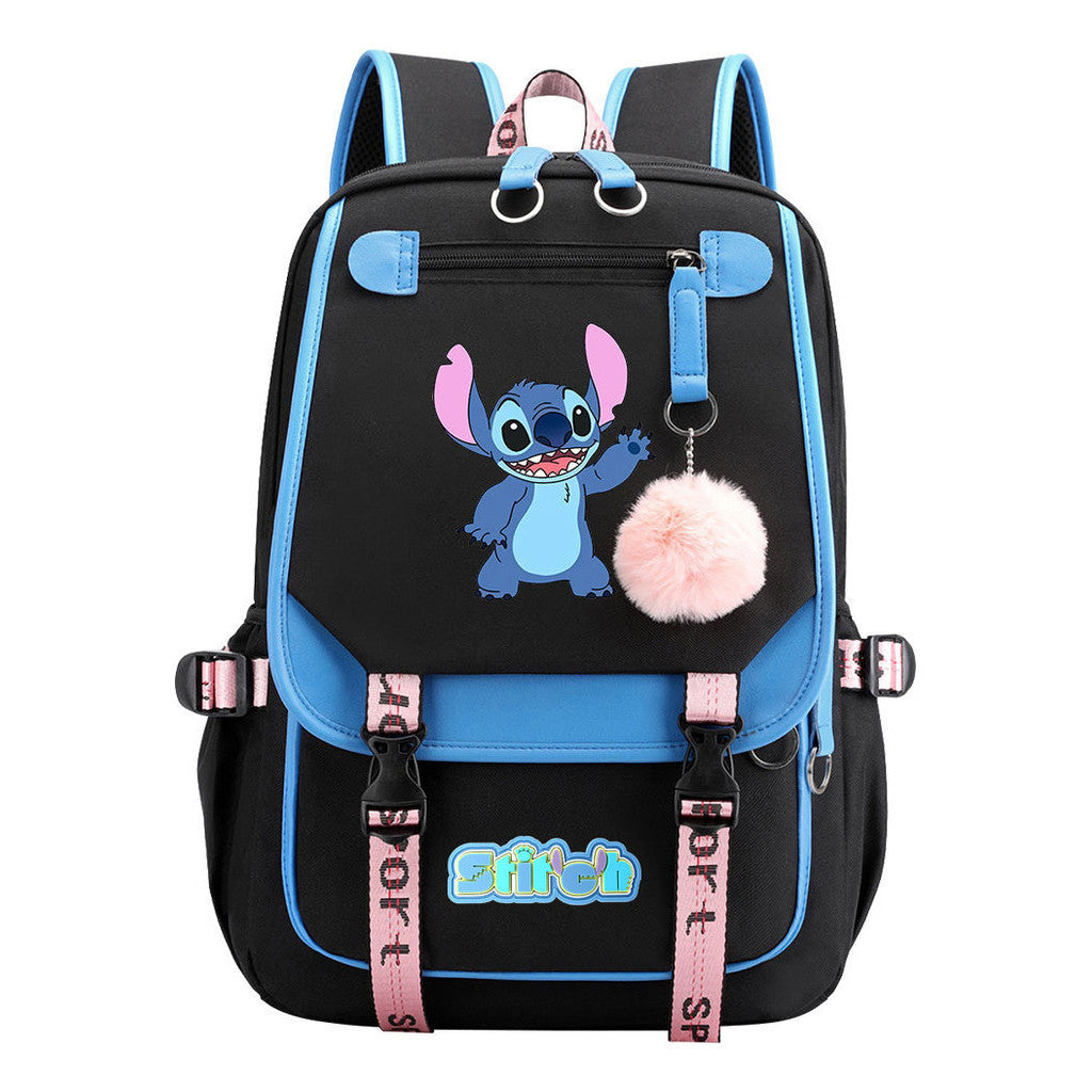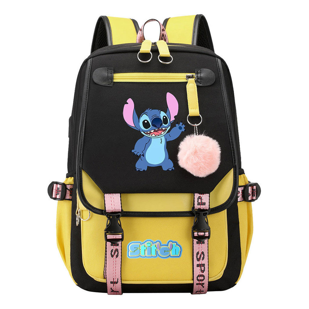 Interstellar Baby Stitch Usb Youth Backpack For Men And Women, Casual Woven Strap Flip Back Backpack