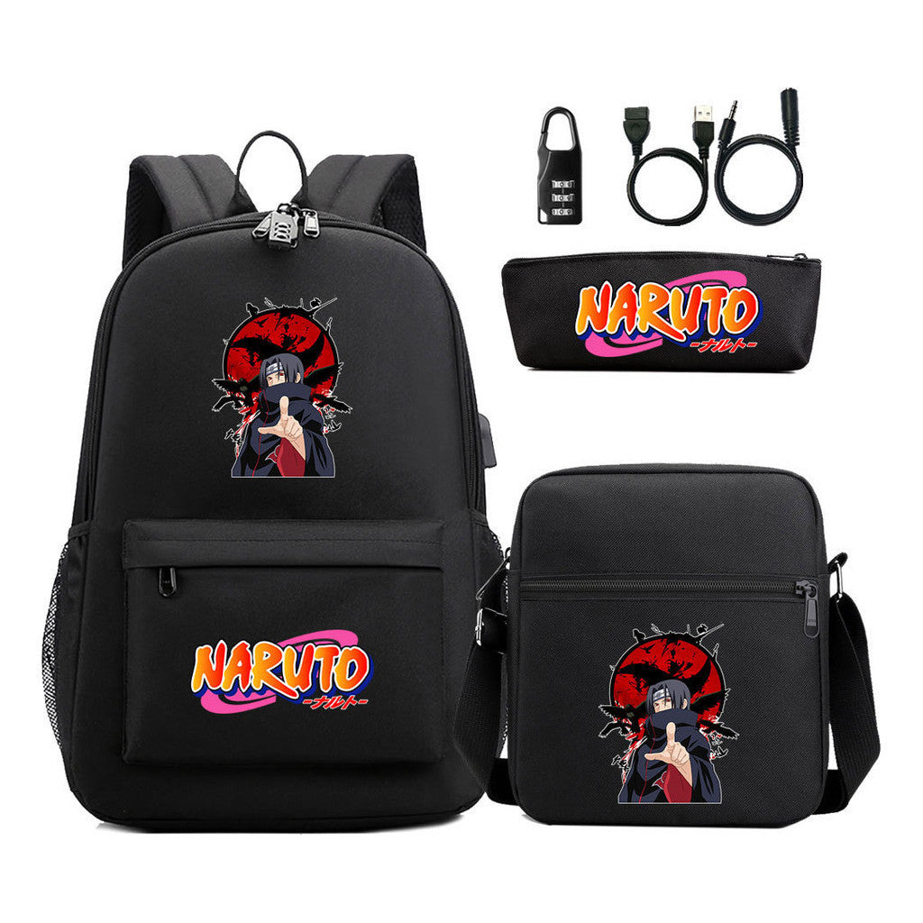 Naruto Usb Password Lock Youth Student Backpack Three Piece Set Backpack Set