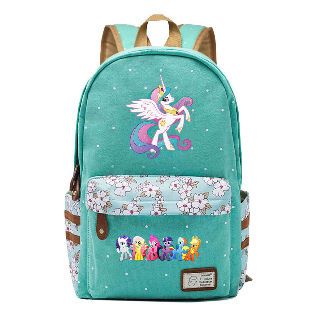 Pony Rainbow Unicorn Student School Bag Fragmented Canvas Girl Backpack