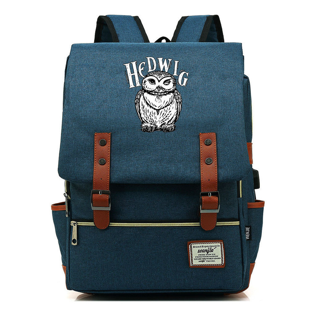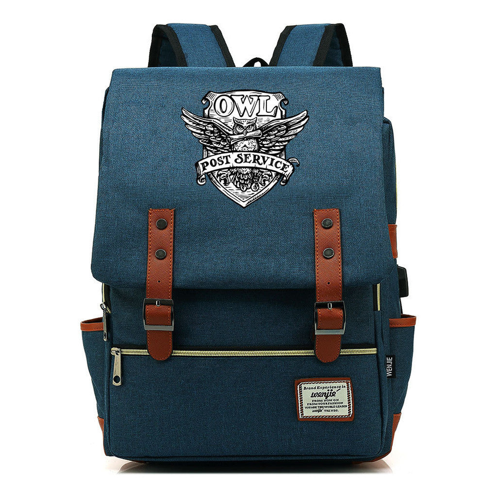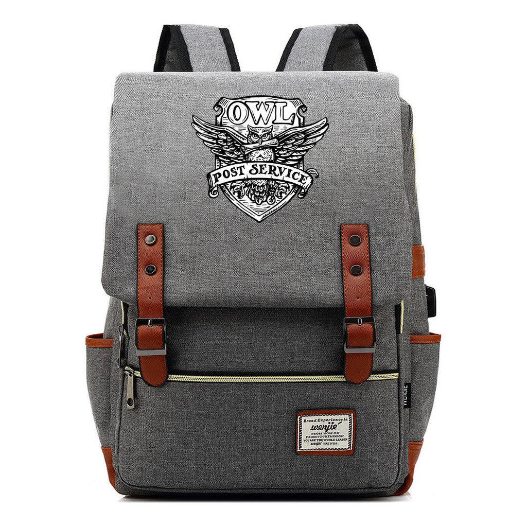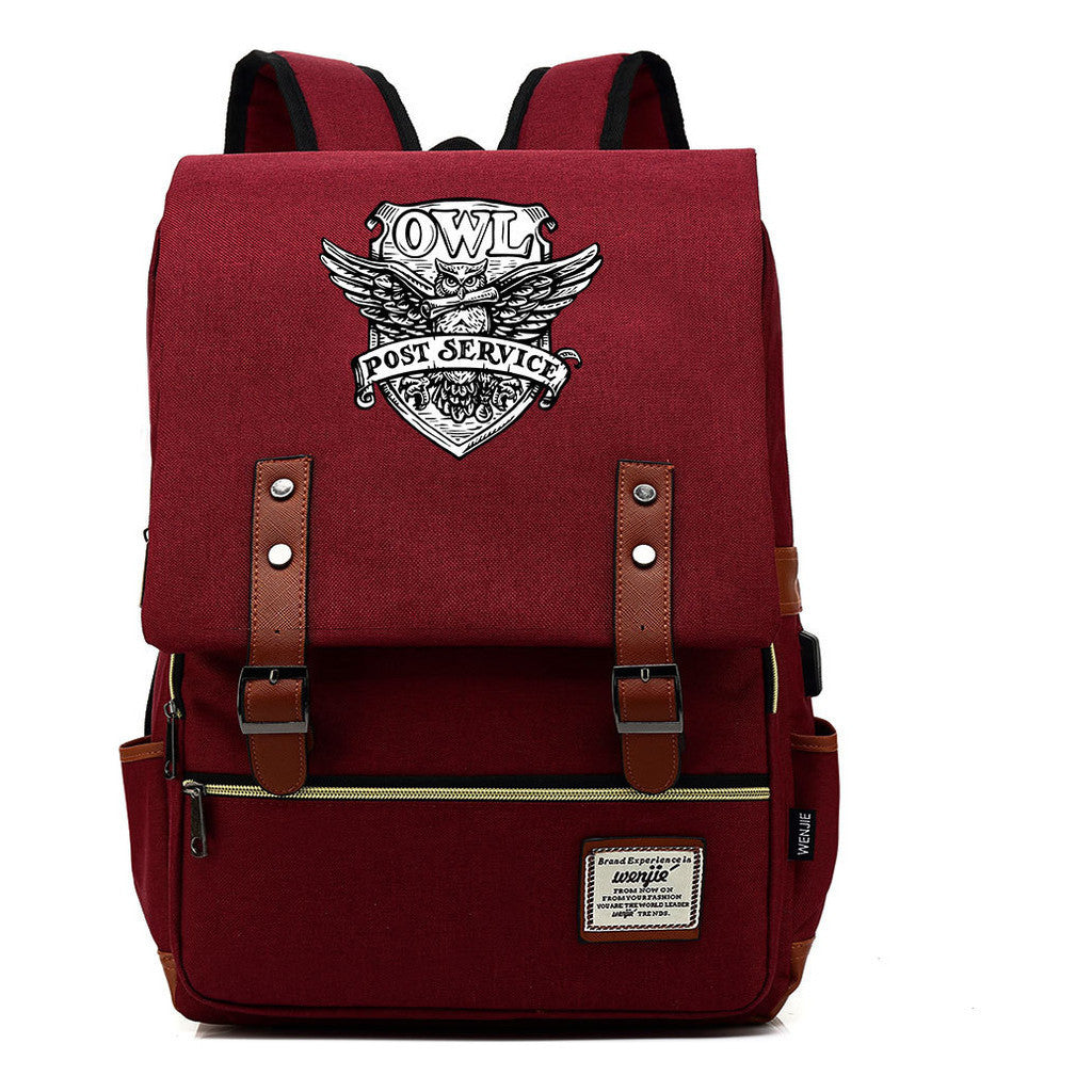 School Of Witchcraft And Wizardry Youth Student Backpack Usb Men's And Women's Leisure Belt Buckle Backpack